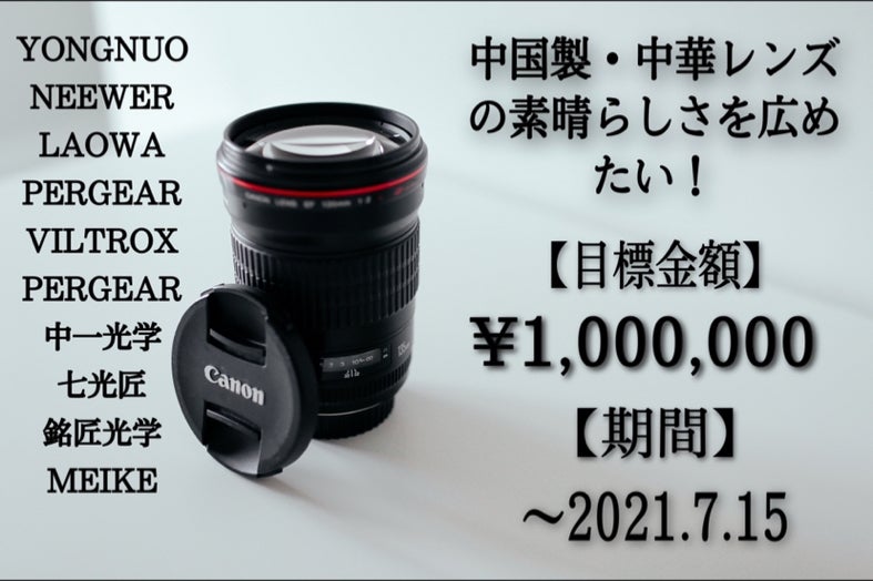 ・このプロジェクトの目的は『中国製・中華製のカメラレンズの素晴らしさを広め、世間のカメラに対するイメージを変え、カメラを身近に感じてもらう』です!