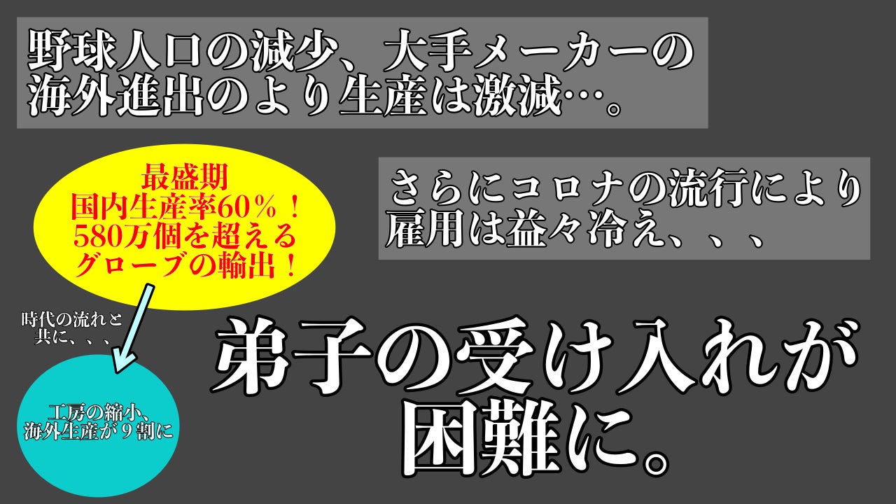 こんにちにおいて職人の減少によりグローブの作り手が減っていることに危惧する酒井さん達、