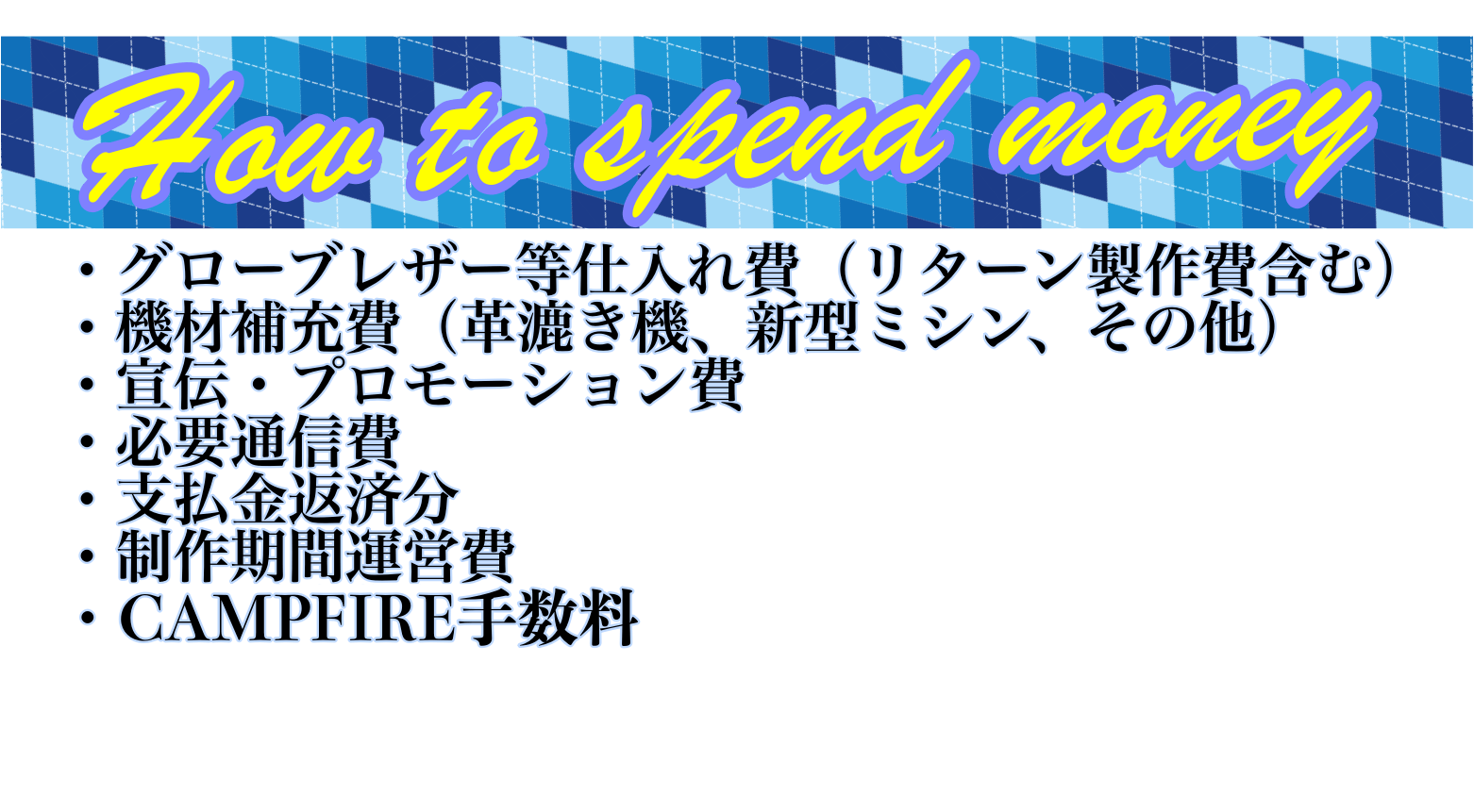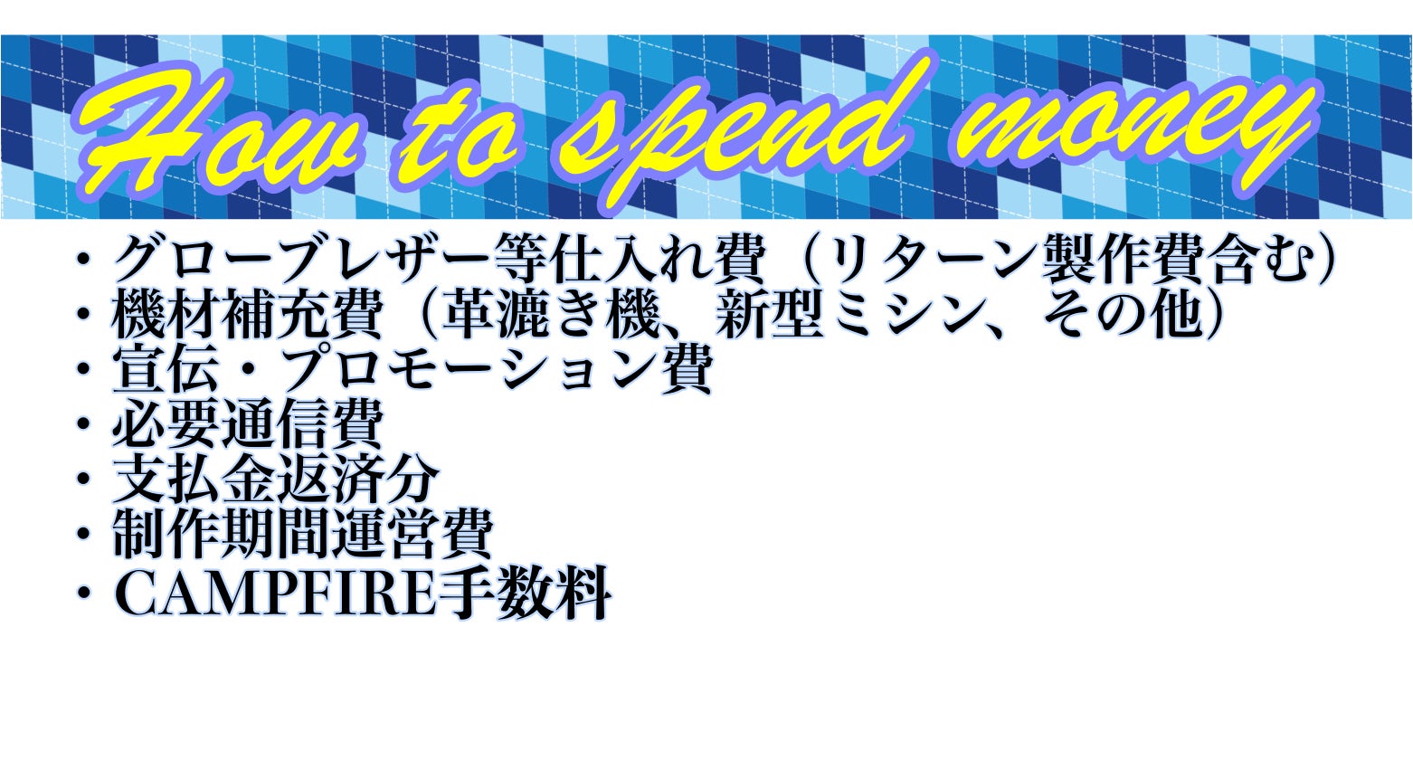 2022/03/15 09:00本日で掲載期間が最終日となりました。今まで協力してくれた皆様には感謝の気持ちと夢を諦めないという強い意志で本日もグローブ作りをおこなっていこうと思います。まだまだご支援が必要です!今日一日でもまだ間に合いますのでどうか皆様ご興味のある方は是非ともご支援の程よろしくお願いします!SkyCraftのラベルが完成いたしました。今後グローブに使用するラベルはこちらと以前までのレザーラベルになります。こちらもオーダーにてお選びしていただけますのでよろしくお願いします。 もっと見る掲載期間残り5日!リターンを追加いたしました!