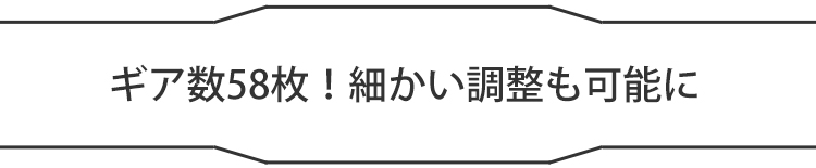ギア数を58枚、回転角度を6.2度に設定した本製品。