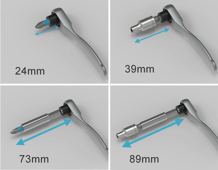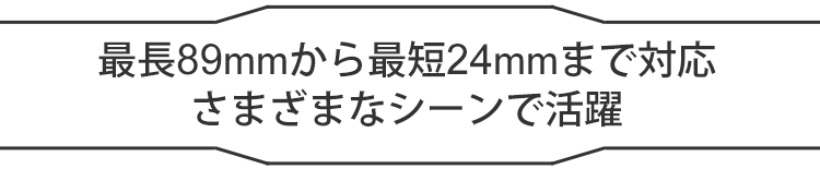 組み換えでアタッチメントの先から基部までの長さを、最長89mmから最短24mmまで対応。細かな場所や、深い場所にも対応できます。