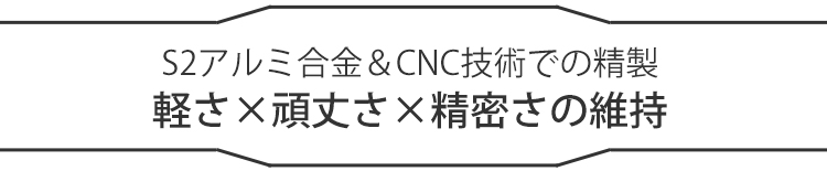 金属製品特有の重厚さを感じる本製品ですが、採用しているのはS2アルミ合金。一般的なスチール製品の、1/2の重量で使用できるので、扱いも手軽です。