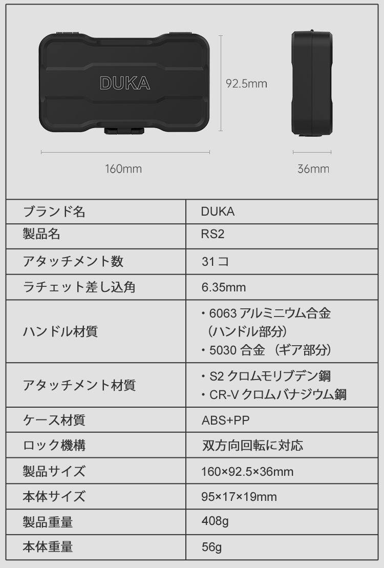 31個の高精度アタッチメント+ハンドル本体のレンチ機能搭載で、これひとつで33in1を実現した33in1ラチェットドライバー「RS2」。