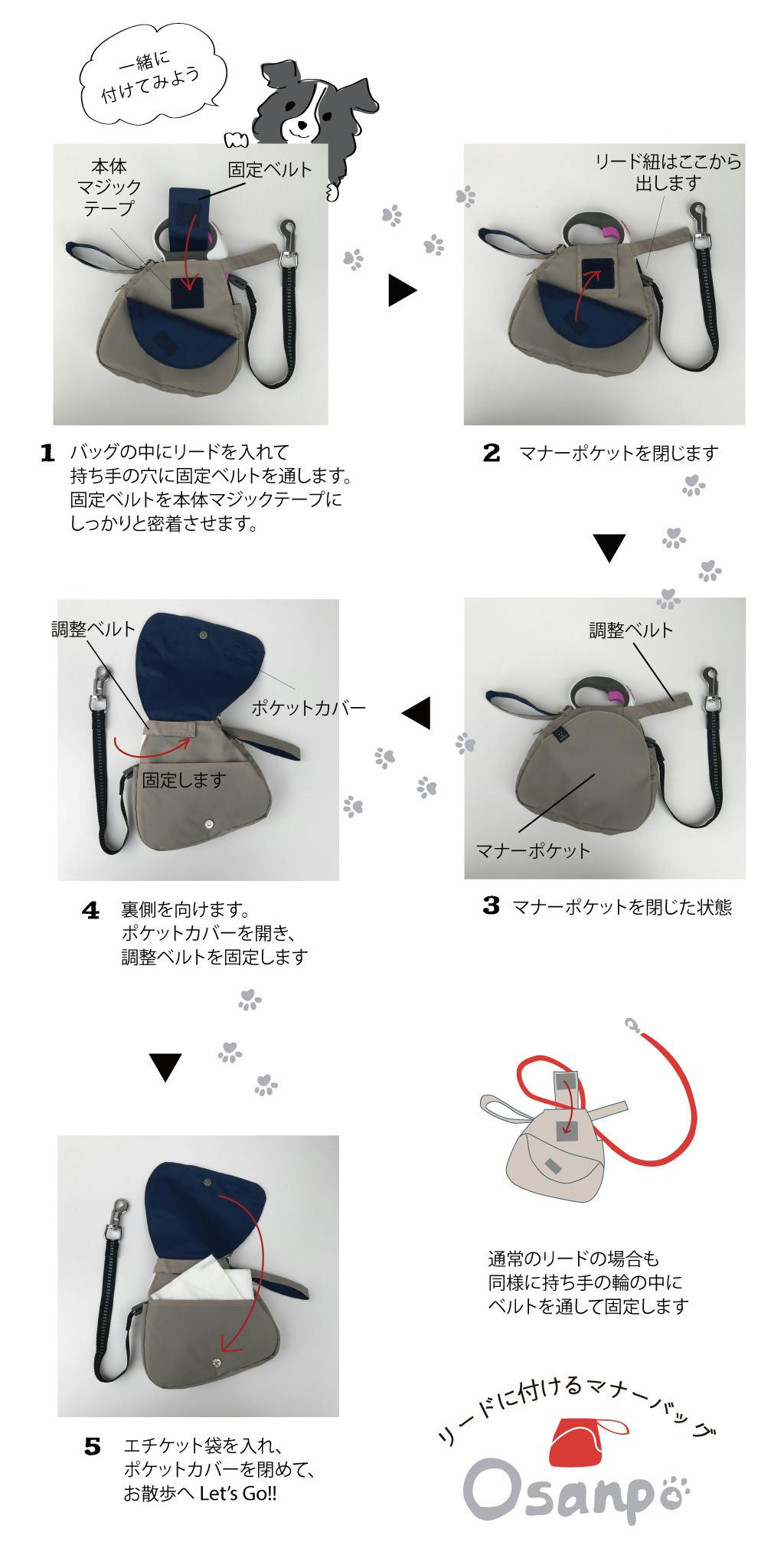 このマナーバッグは必要なものを収納しつつ、リードだけでお散歩している感覚にさせてくれます。