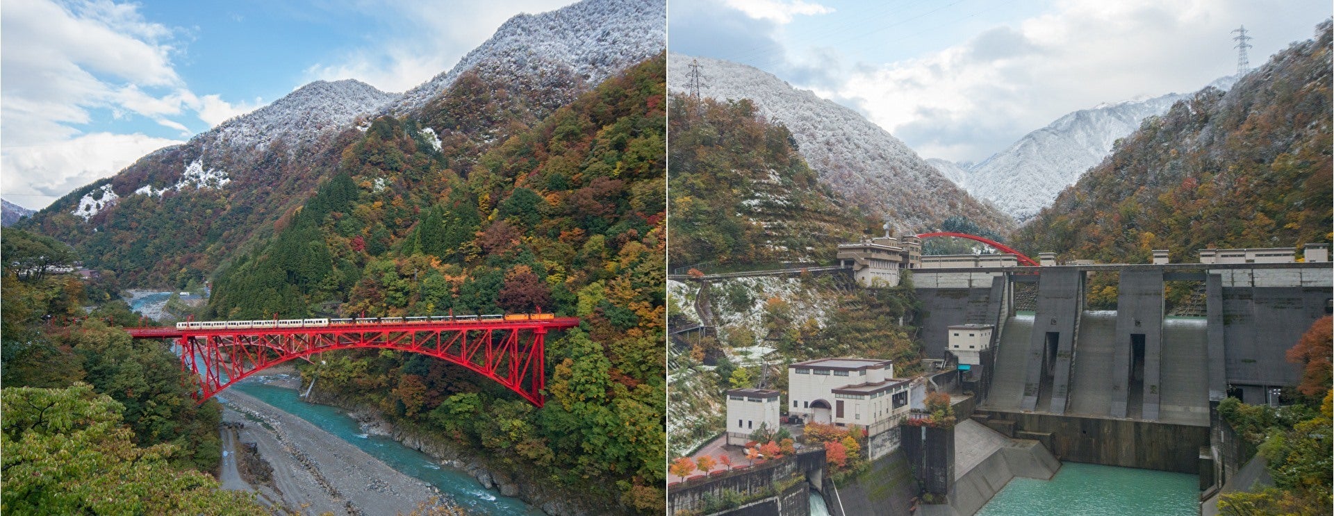 トロッコの鉄橋、宇奈月ダムが見えるロケーション