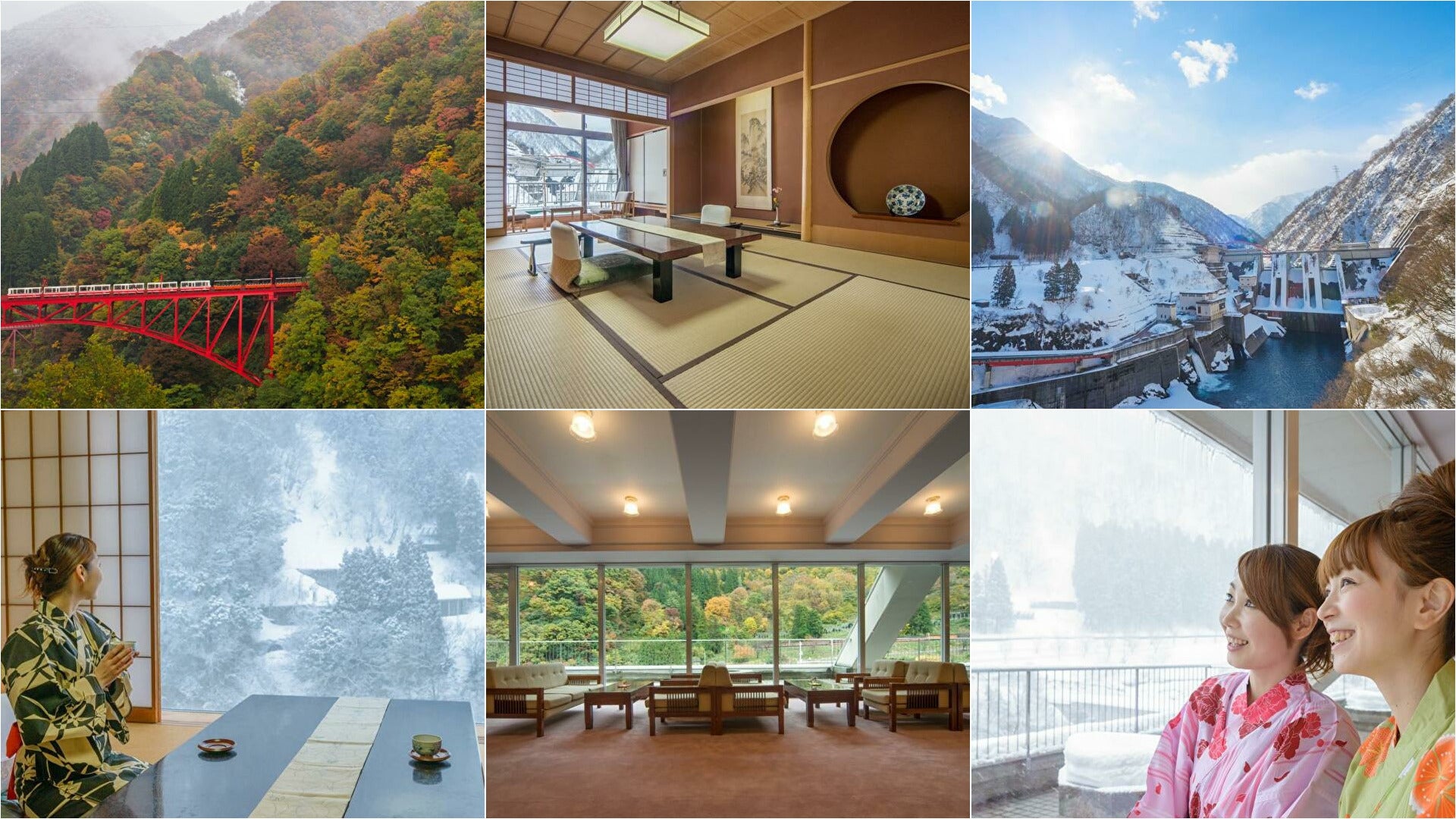実はホテル黒部は非常に特徴ある立地です。観光名物「黒部峡谷トロッコ電車」が対岸を走る風景や、迫力ある宇奈月ダムが見える唯一の宿なのです!