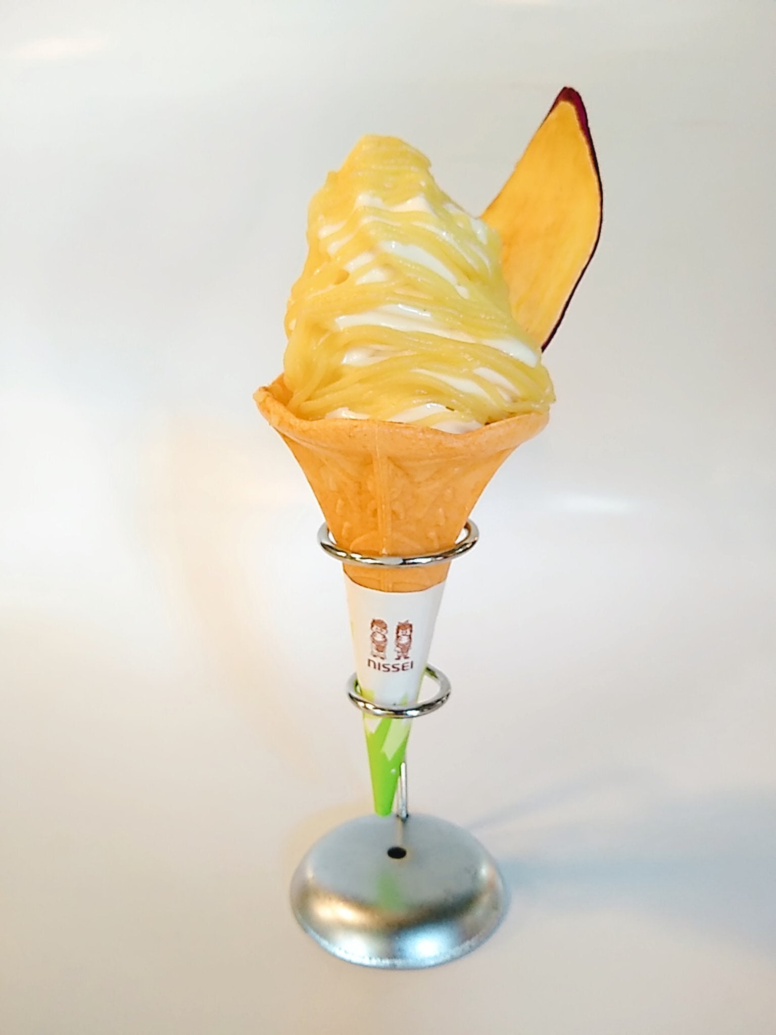 うなぎいもソフトクリームの上に、芋100%のペーストをモンブラン機で絞るなも!!
