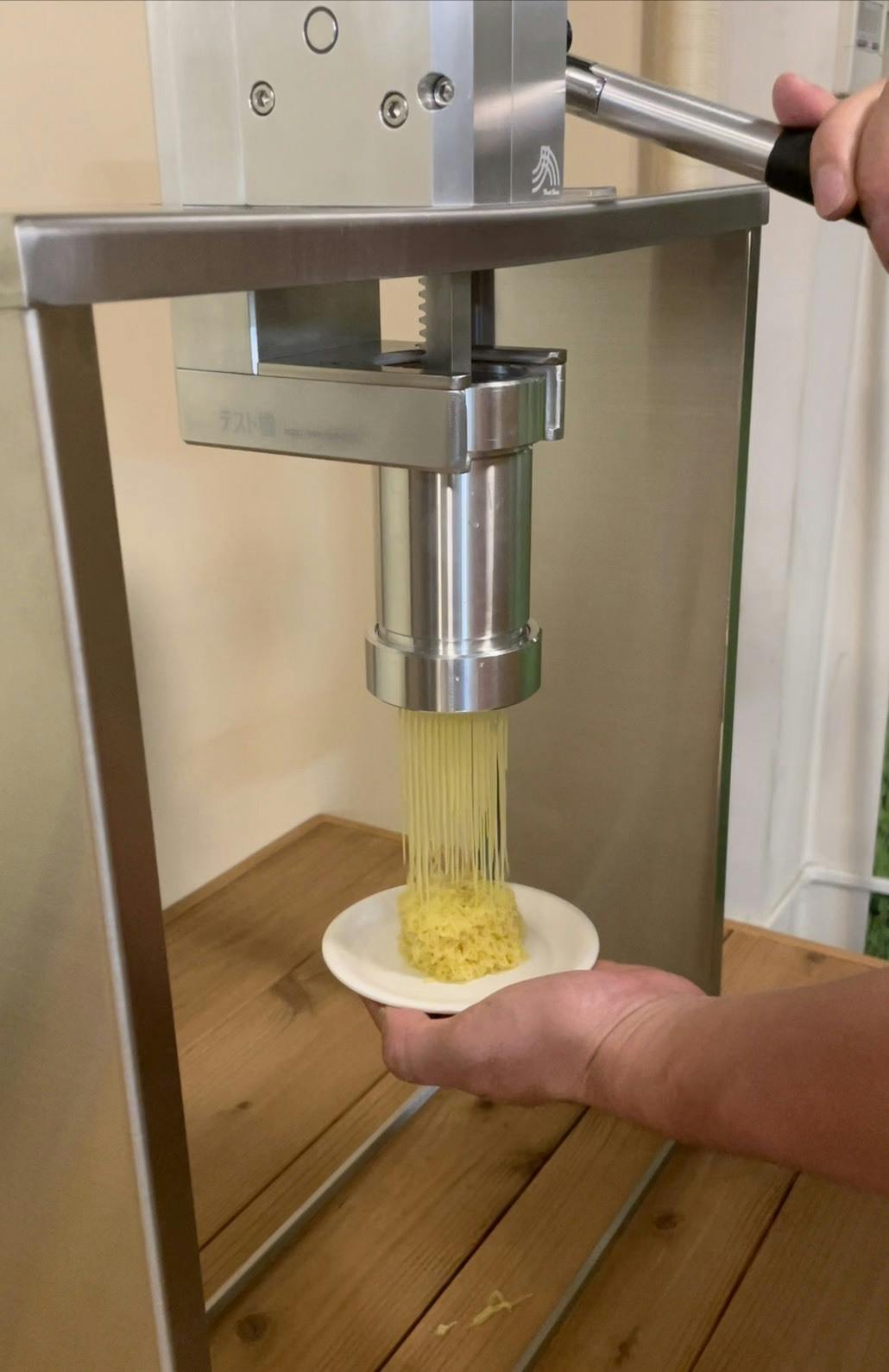 うなぎいもソフトクリームの上に、芋100%のペーストをモンブラン機で絞るなも!!