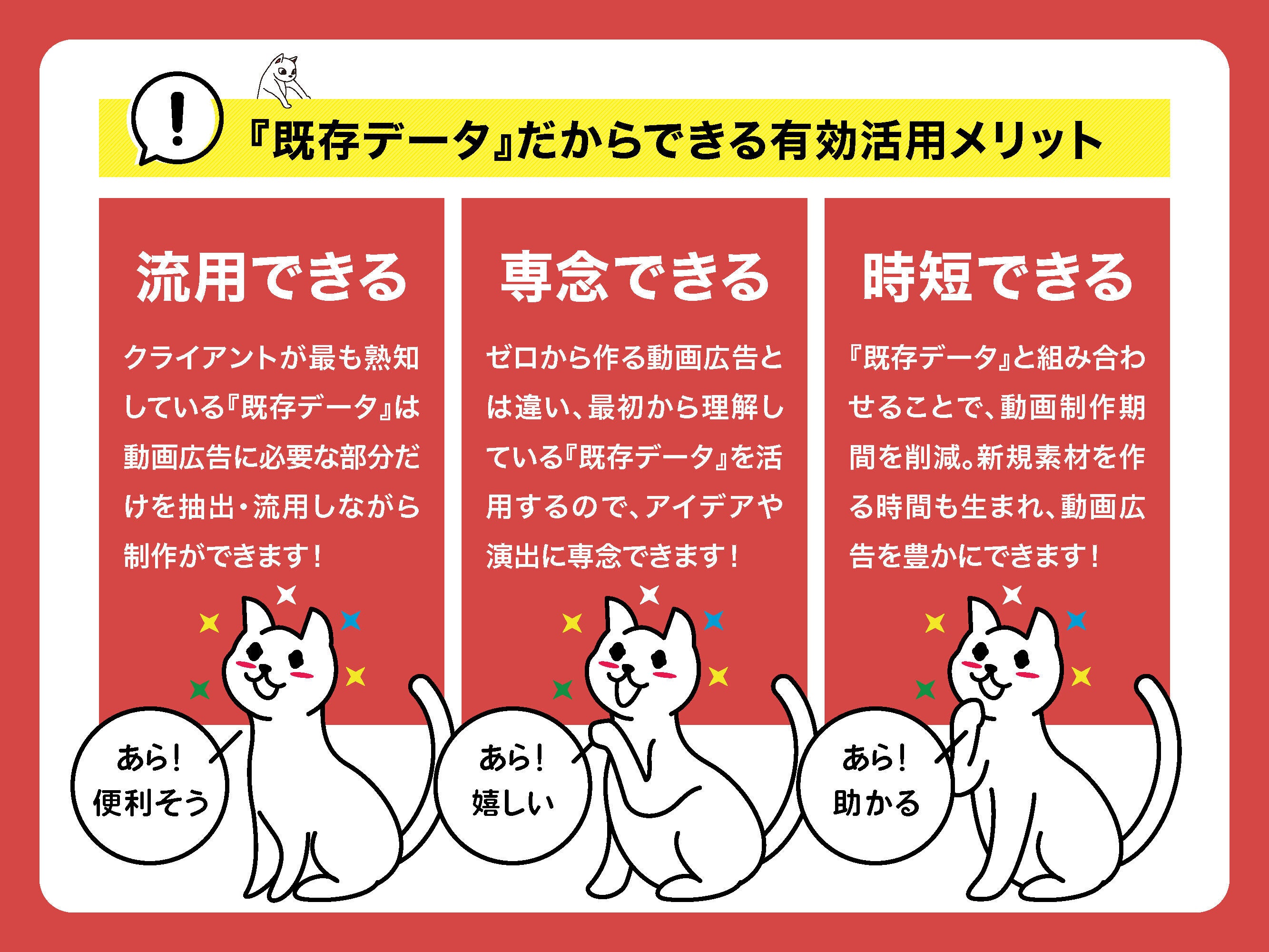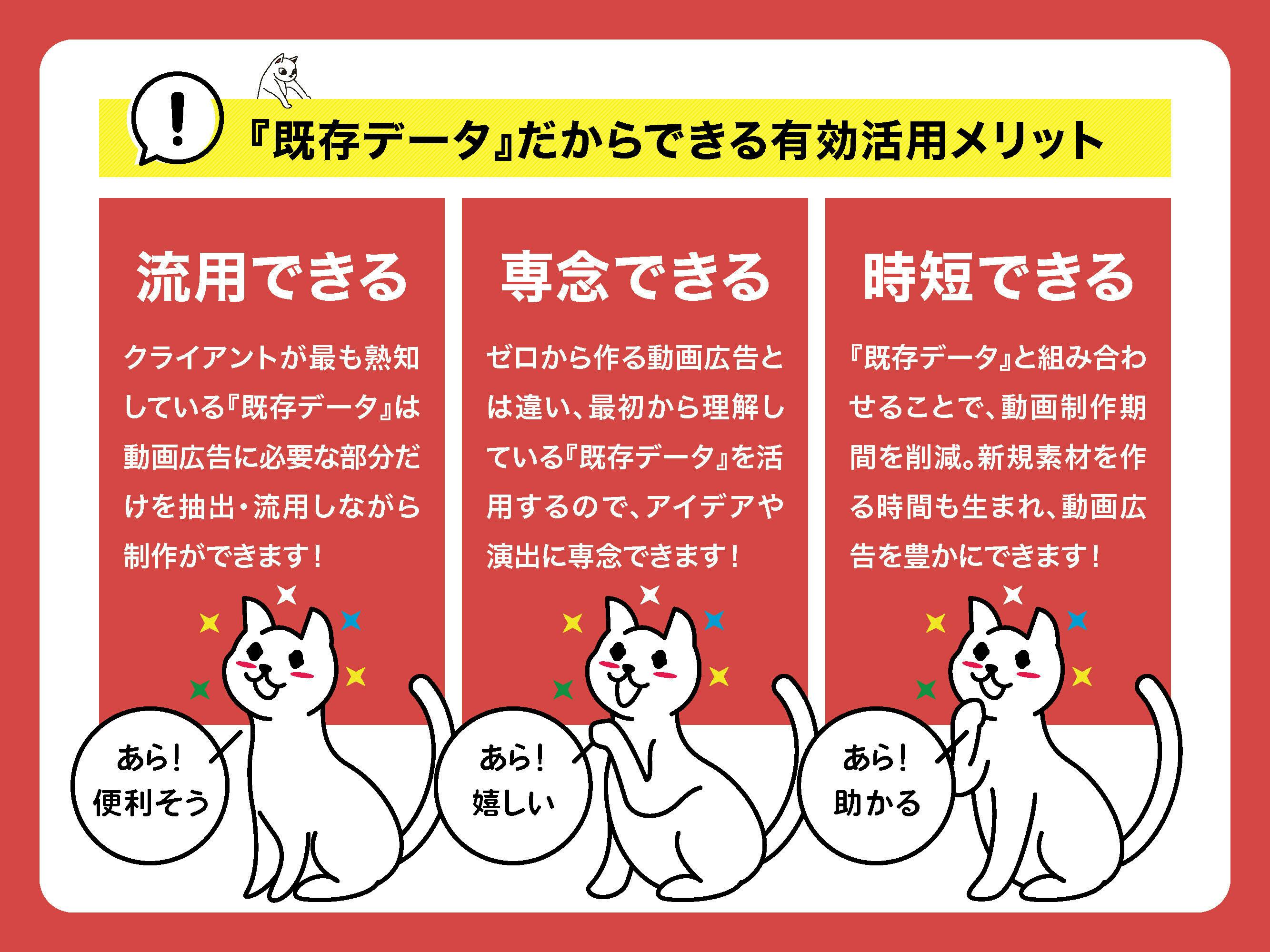 ・『既存データ』を元に、デザイナー + 構成作家 + 動画クリエイターのプロ達が動画制作を行う