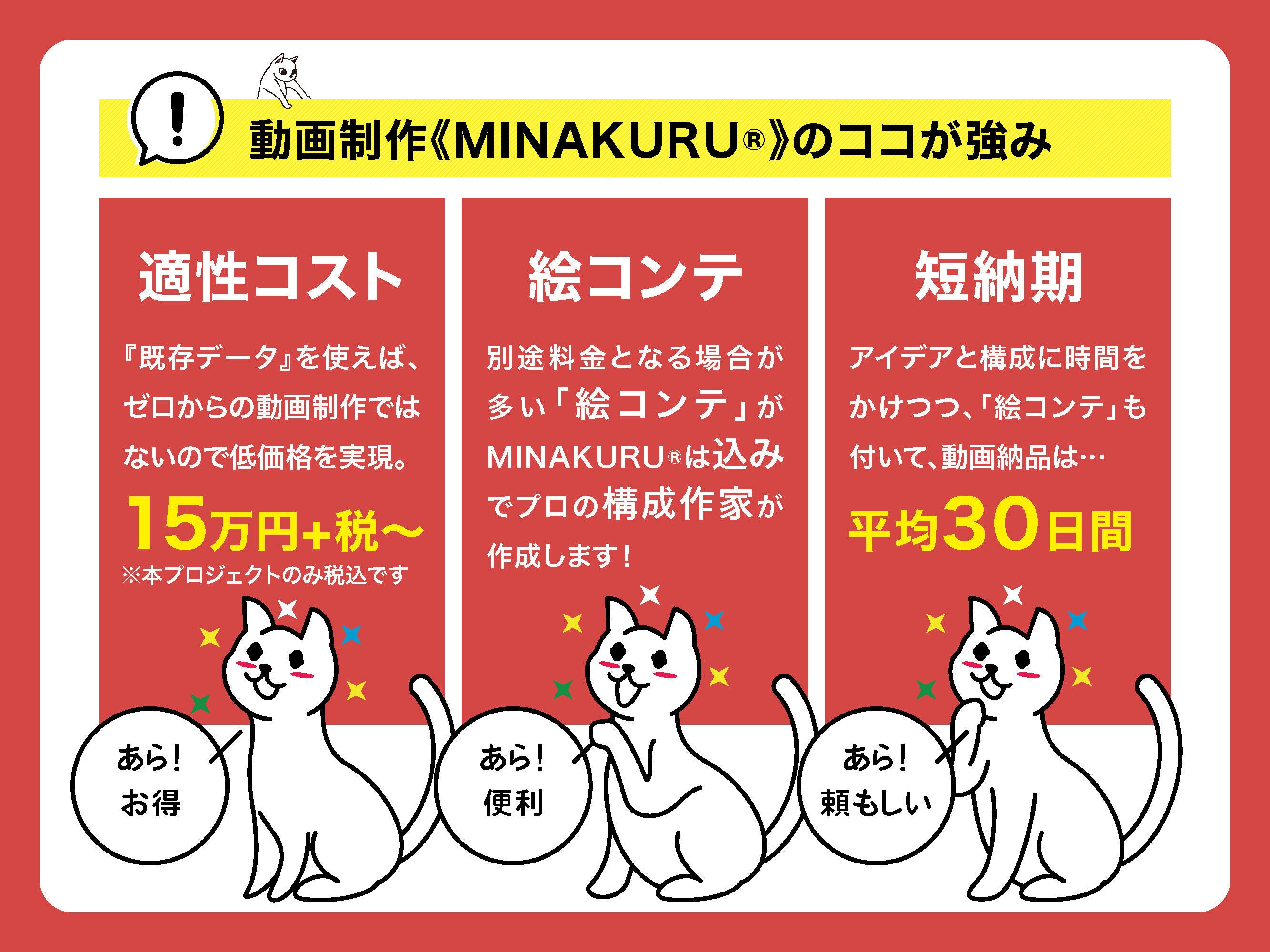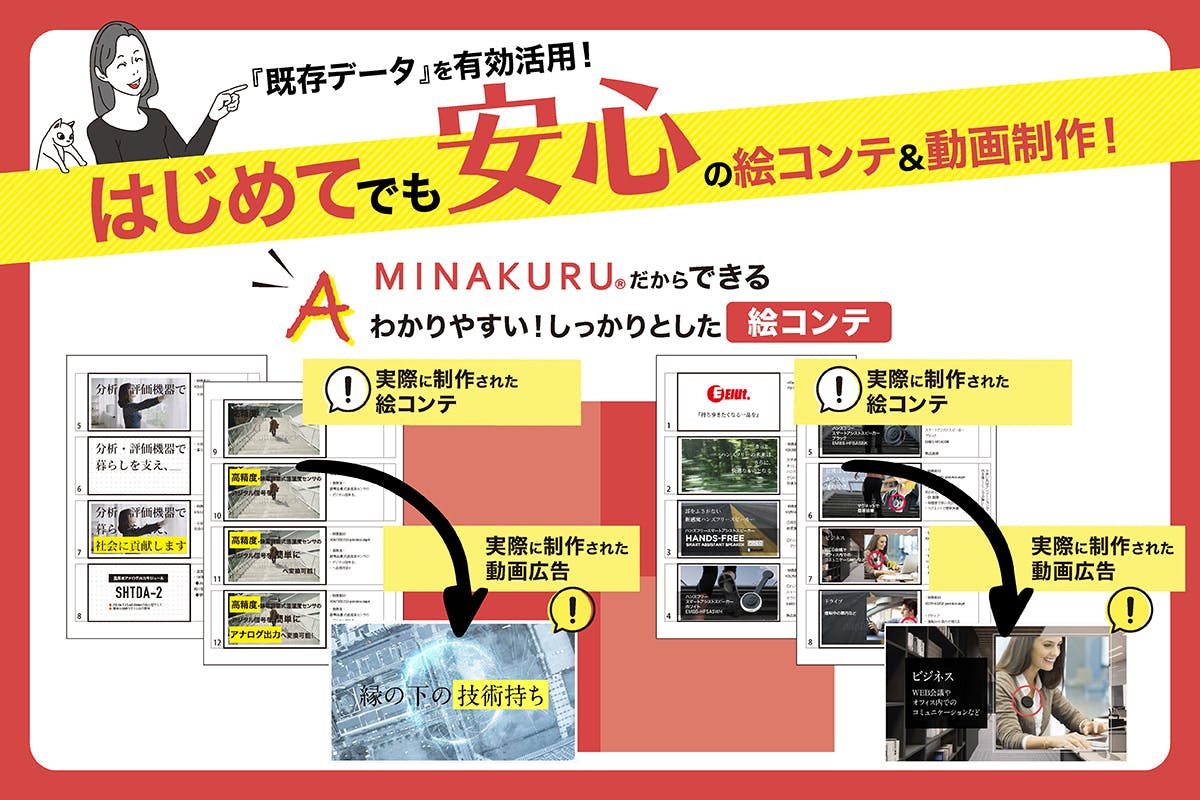 【既存データ】から動画広告が作れる動画制作《MINAKURU®》ミナクルのHP開設です。