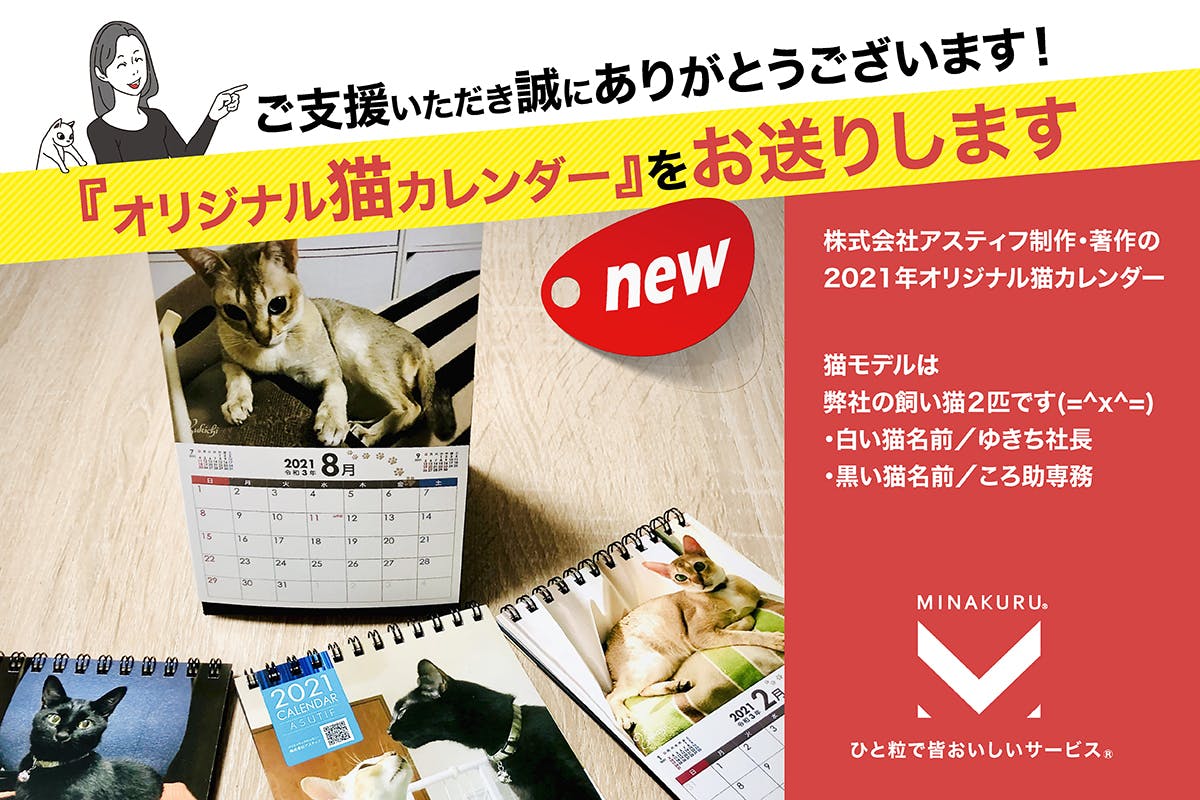 2021年度版オリジナル猫カレンダーとお礼のメールをお送りします。