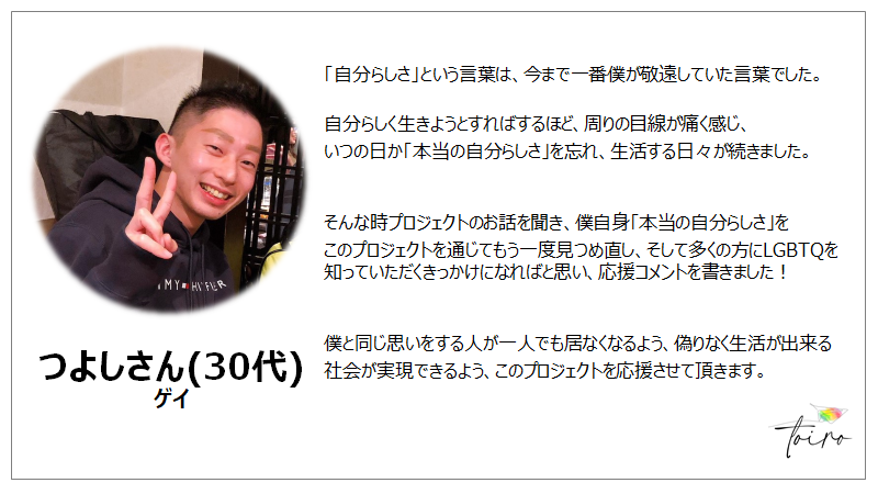このプロジェクトがセクシュアルマイノリティについて知るきっかけとなればと考えております。