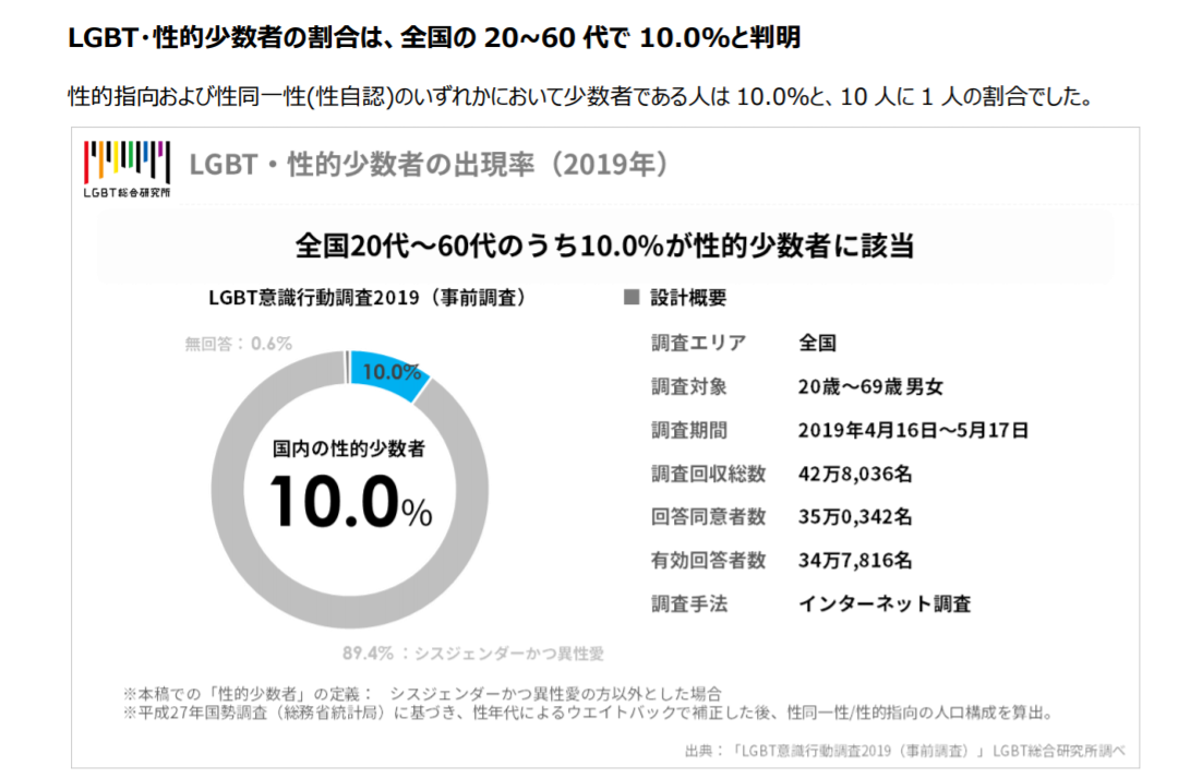 突然ですが、みなさんは日本におけるLGBTQの割合をご存じでしょうか。