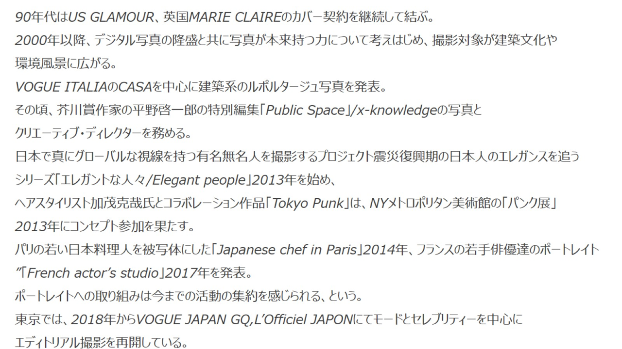 「Louis Vuitton」「Hermes」などのカメラマンを務める世界的に有名な