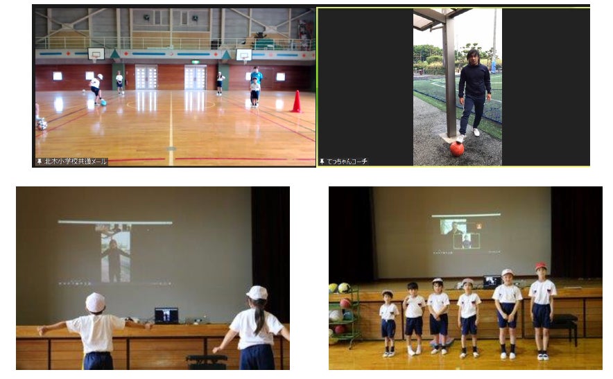 全校生徒6名の離島の小学校でのオンラインサッカー教室の様子