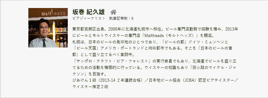 札幌市中央区でMaltheads(モルトヘッズ)というビール&ウイスキーバーを経営しております、坂巻紀久雄(さかまき きくお)と申します。
