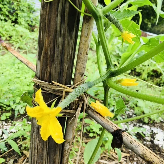 キュウリが可愛い実を付け出しました〜可愛い〜‼︎
