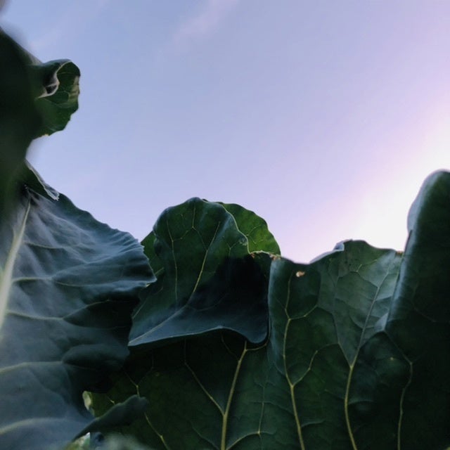 力強いブロッコリーの葉が夕方の空に凄く映えていました。