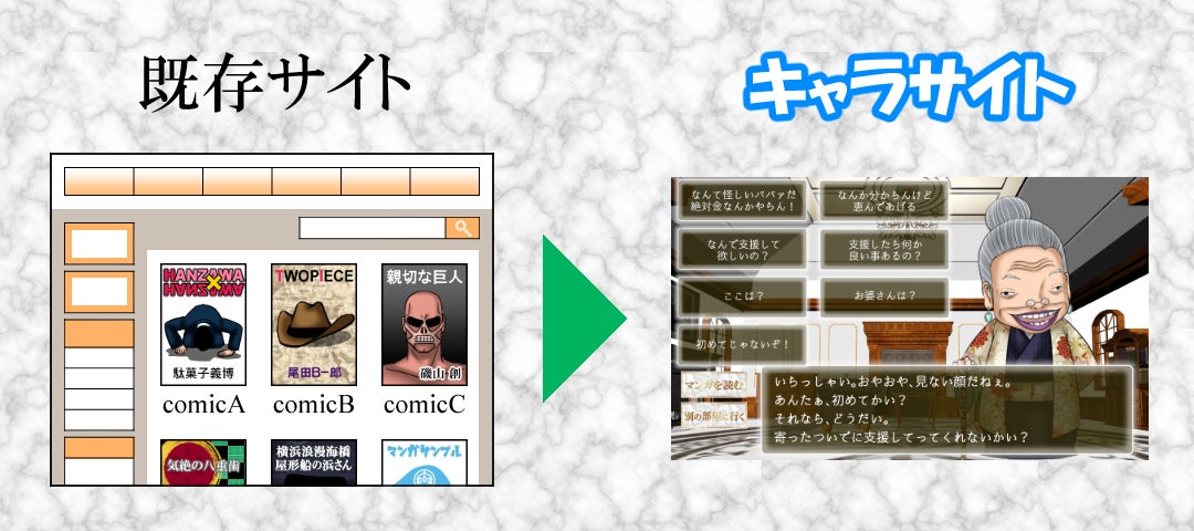 既存のほとんど全てのサイトは「チラシ」としての機能を有していますが、私の創るサイトでは、キャラクターが接客してくれる、バーチャルな本屋さんとして機能します。