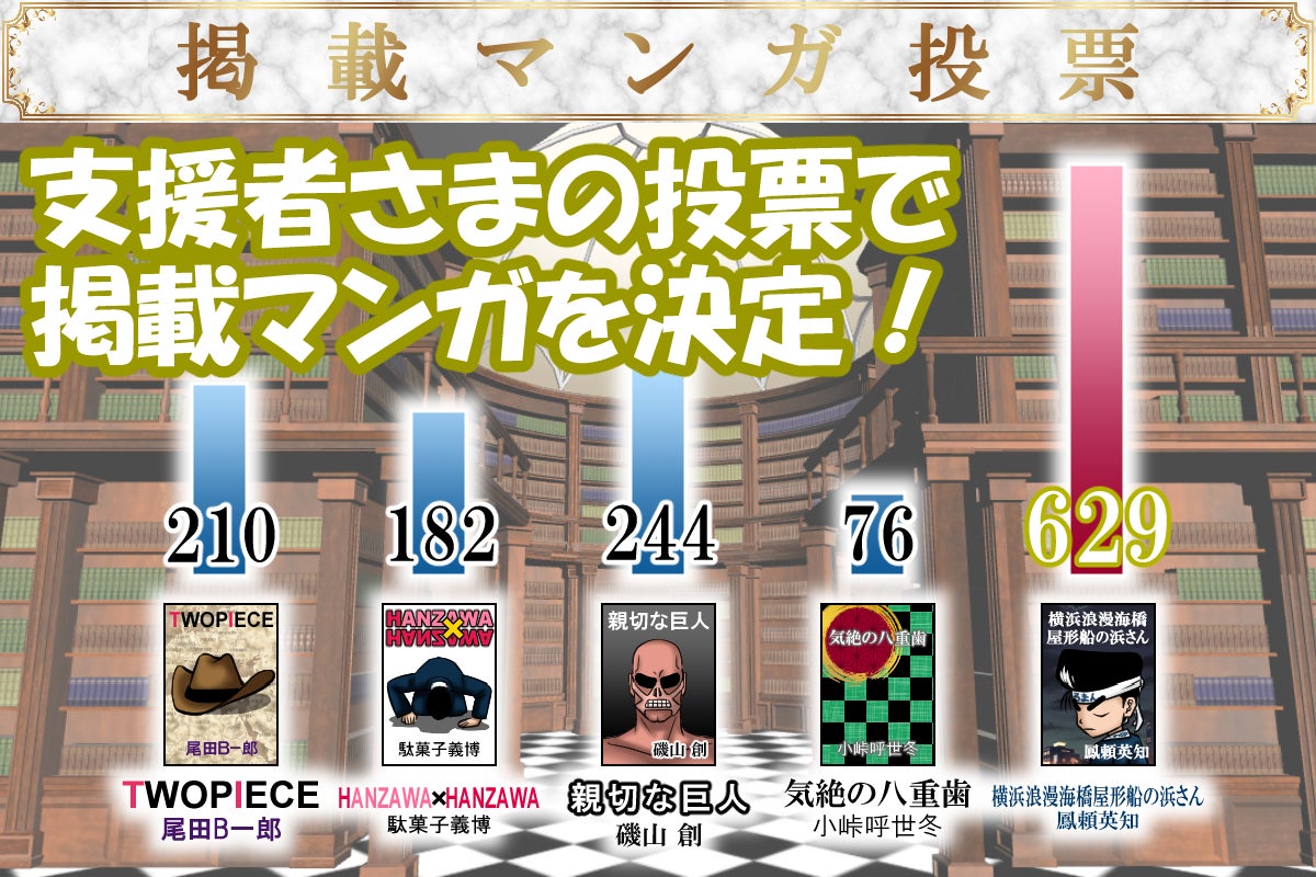 掲載マンガはご支援者様の投票によって決定するので、ご支援いただいた方のご意見が強く反映されます。