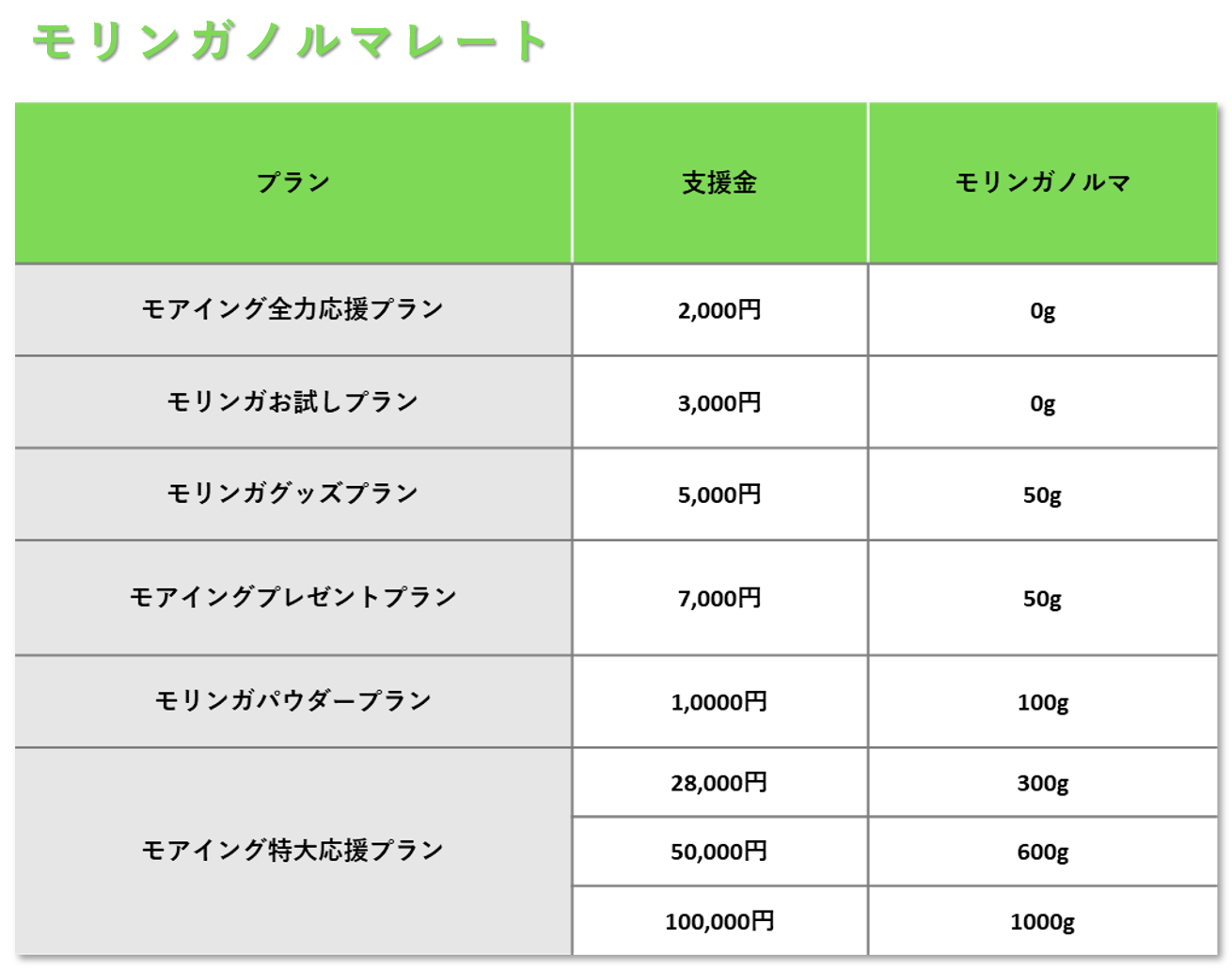 ※こちらのモリンガノルマは、モアイングが責任を持って今後の商品開発等に使用するモリンガパウダーであり、リターンには含まれておりません。ご了承ください。