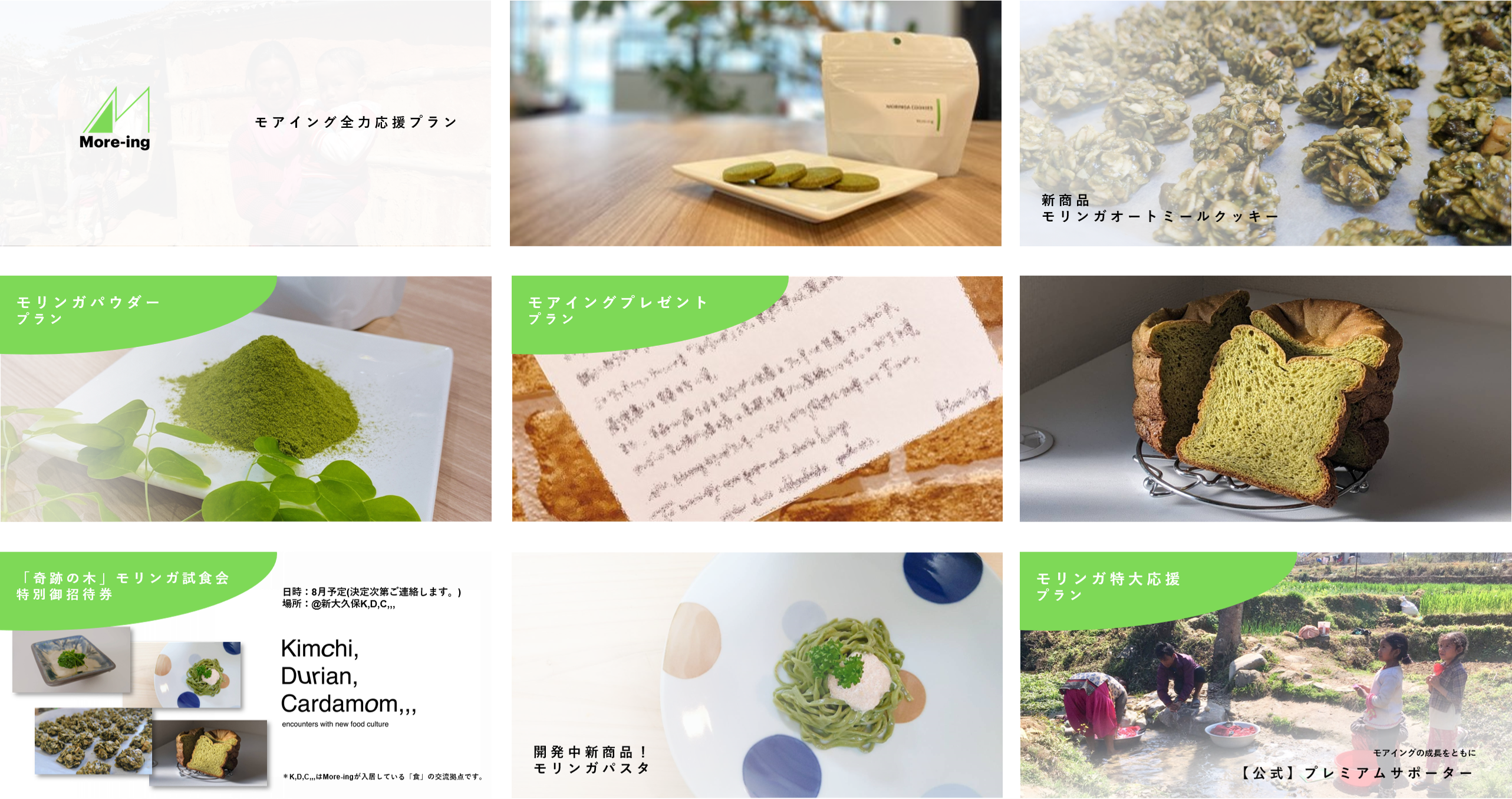 今回のクラウドファンディングにご協力いただいた方々へのリターンとは別に、ノルマ的にMore-ingがモリンガを買い取ります!この制度により、私たちが継続してモリンガ農家の方を資金面で支援、そして日本に継続してモリンガを広める活動をより加速させます。