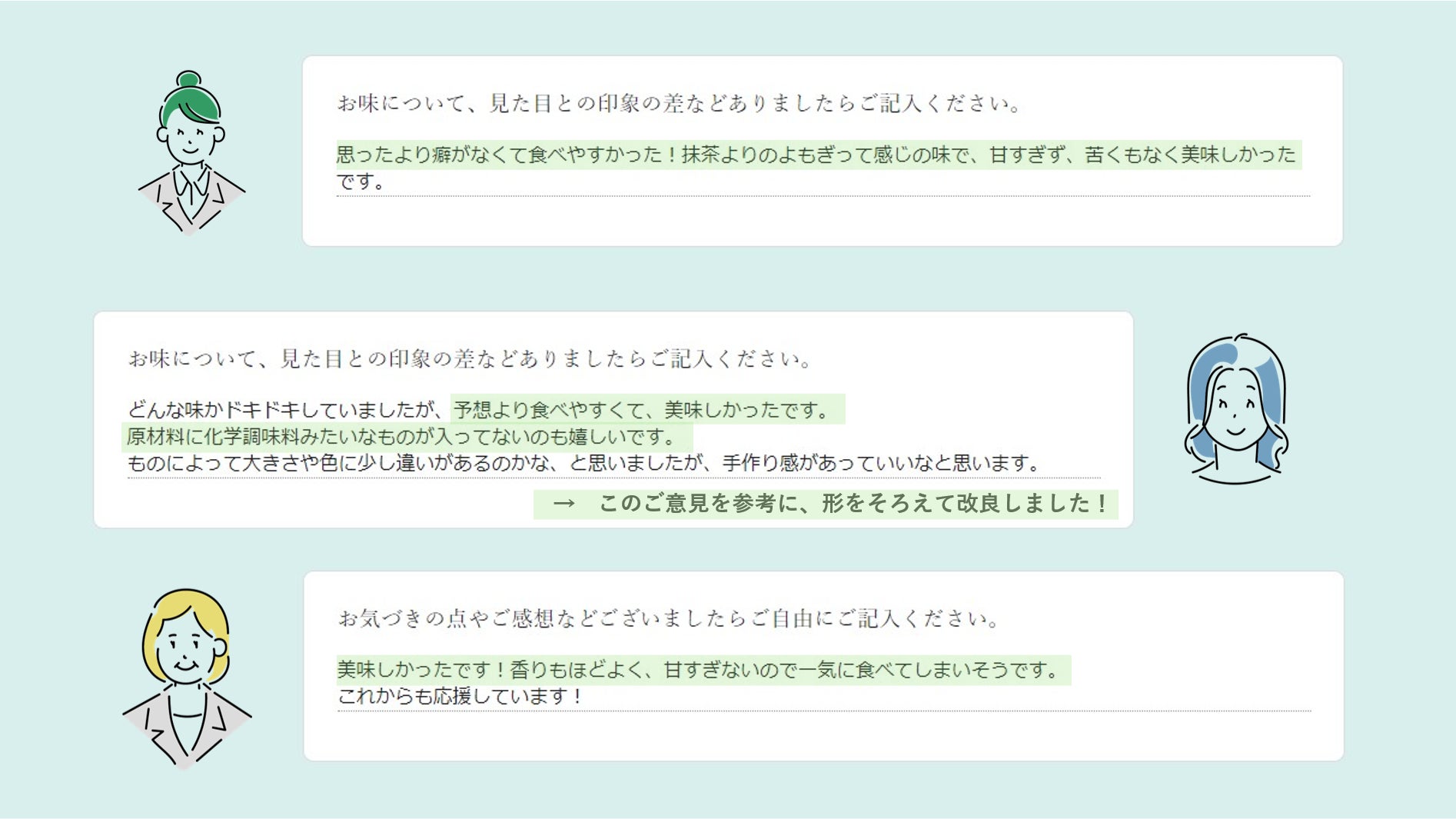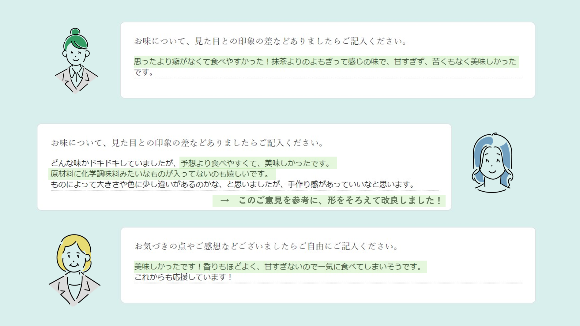 モアイングはこれまで、モリンガクッキーのモニターの方などのお声を反映して商品を改良してきました。今回も、リターンや試食会にて皆様の貴重なご意見をいただき、モリンガ商品をよりよくしていきます!