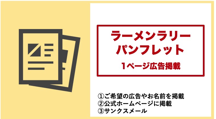 1)ラーメンラリー公式パンフレットに、ご希望の広告やお名前を掲載できます。