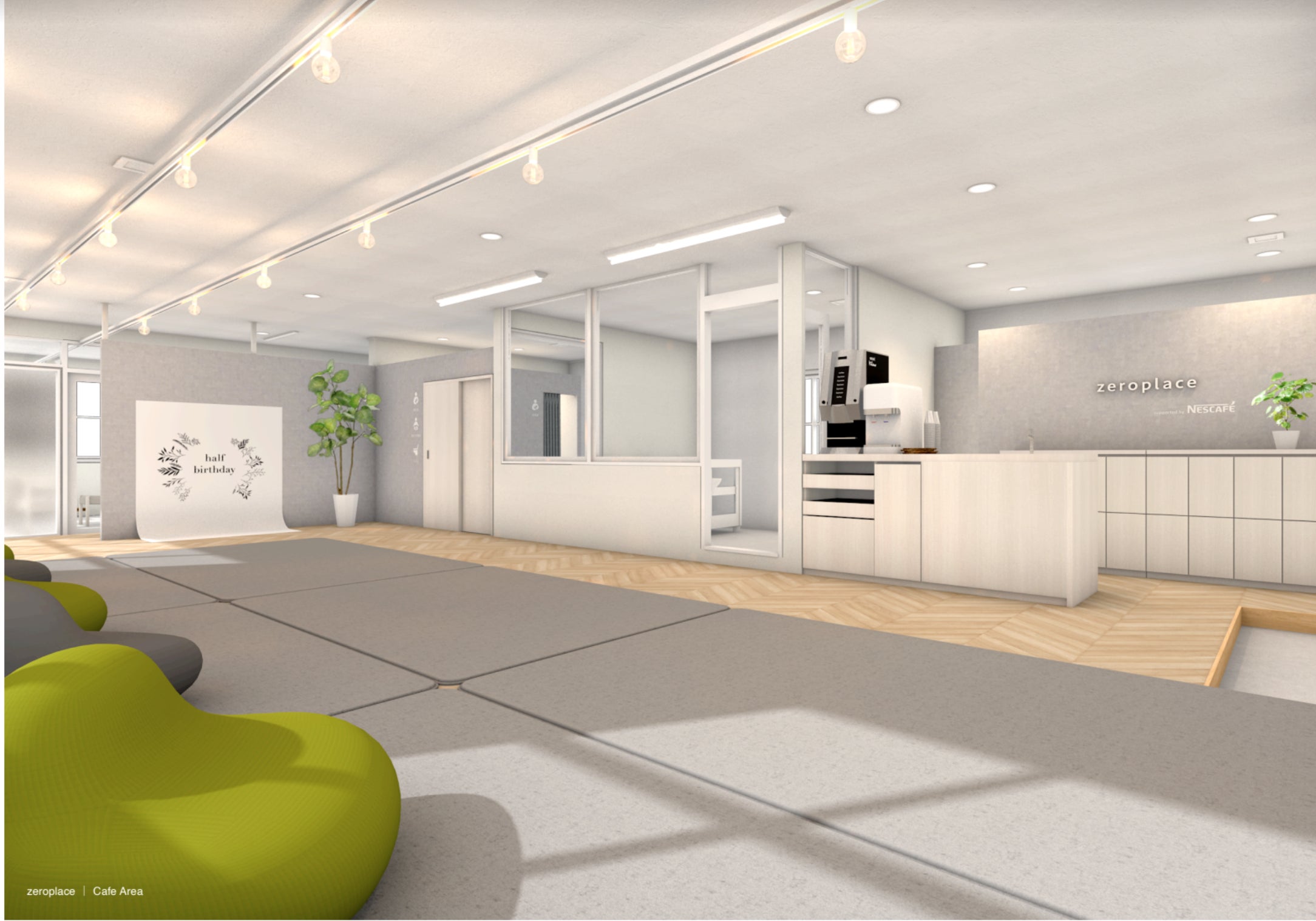 zeroplaceは、“産後の自分時間をここで”をコンセプトにしたラウンジ併設型の産後ケア施設です。赤ちゃんを連れて、パートナーや友人と気軽にコーヒータイムが過ごせるラウンジエリアと、おしゃれな空間で助産師に赤ちゃんを預けて休んだり授乳相談などができるミッドワイフエリア(産後ケアスペース)から構築されます。*ミッドワイフ=助産師