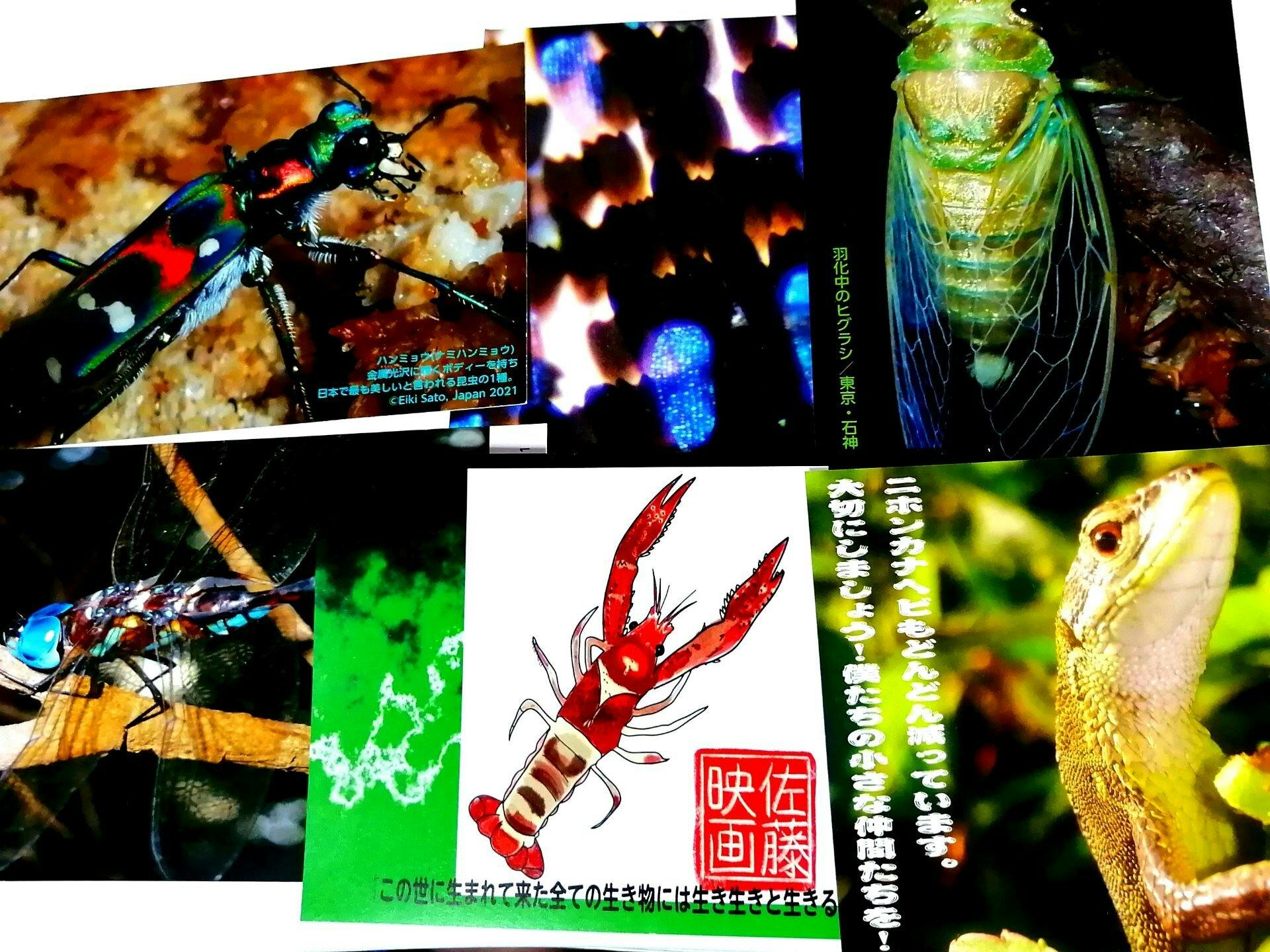 ↓実際のポストカード『佐藤映画ロゴ』(トレードマークはアメリカザリガニ)