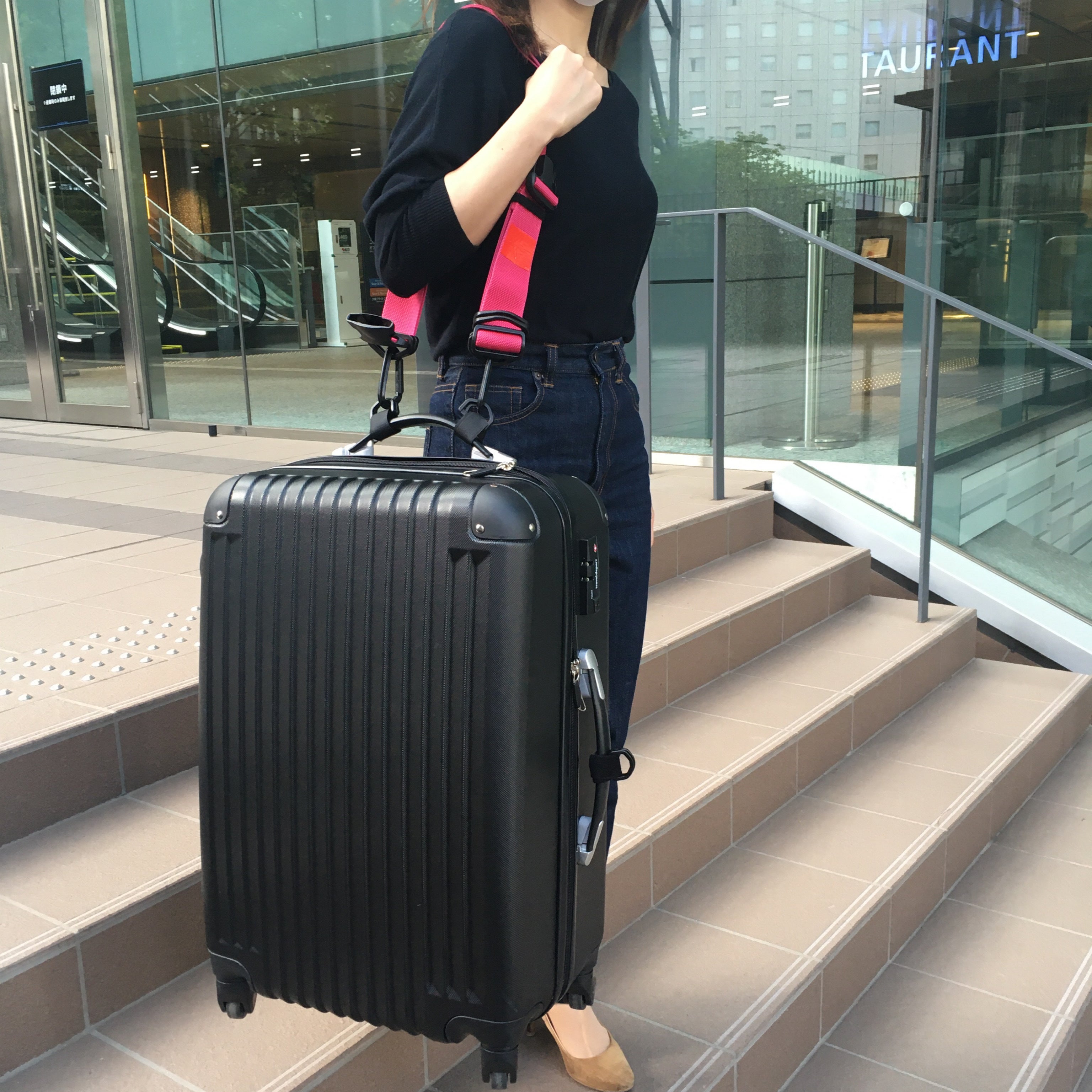 Multinは移動中は普通のスーツケースベルトとして開口防止に、
