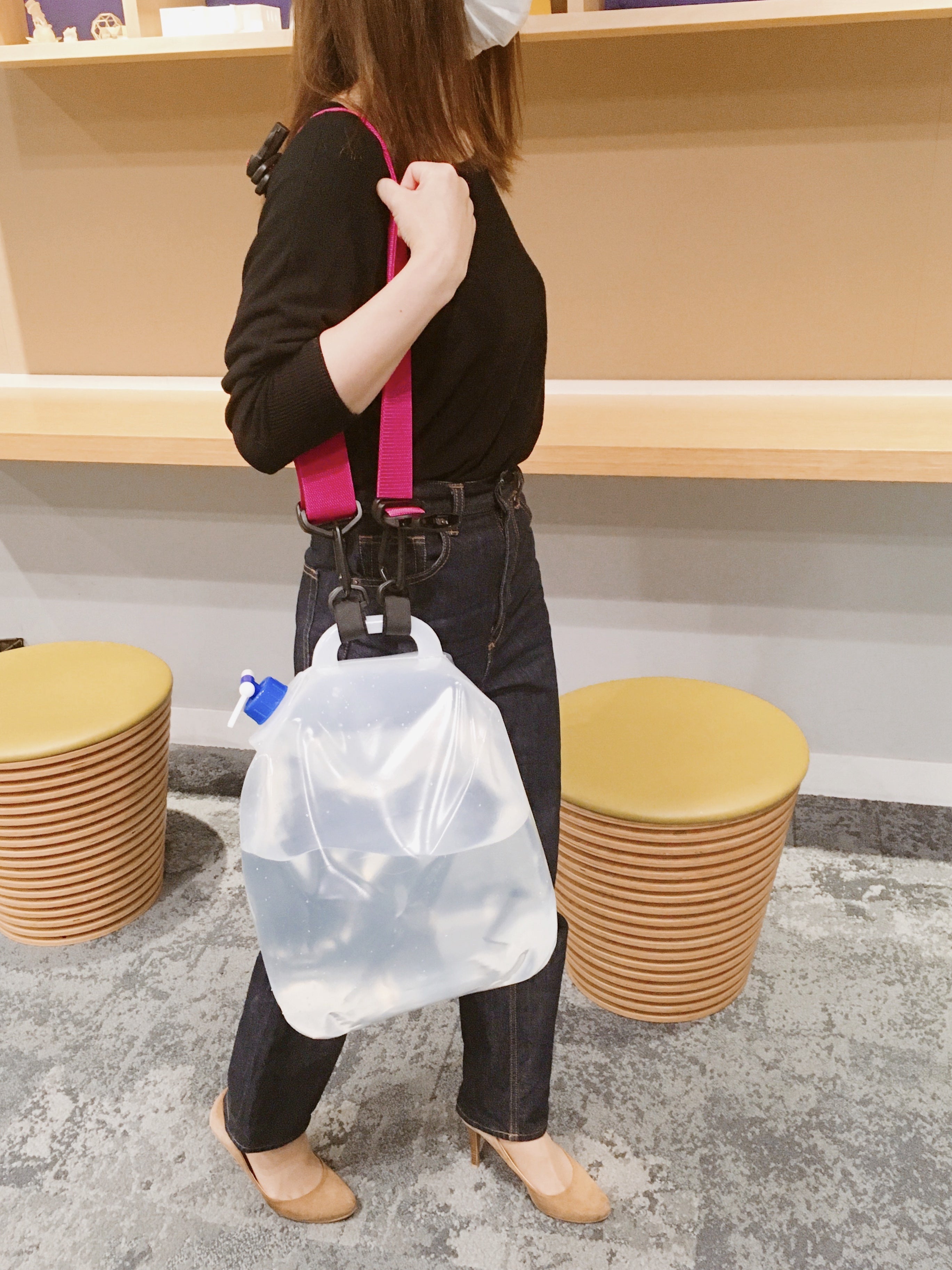 ◯アウトドアや災害時に給水タンクを運ぶ