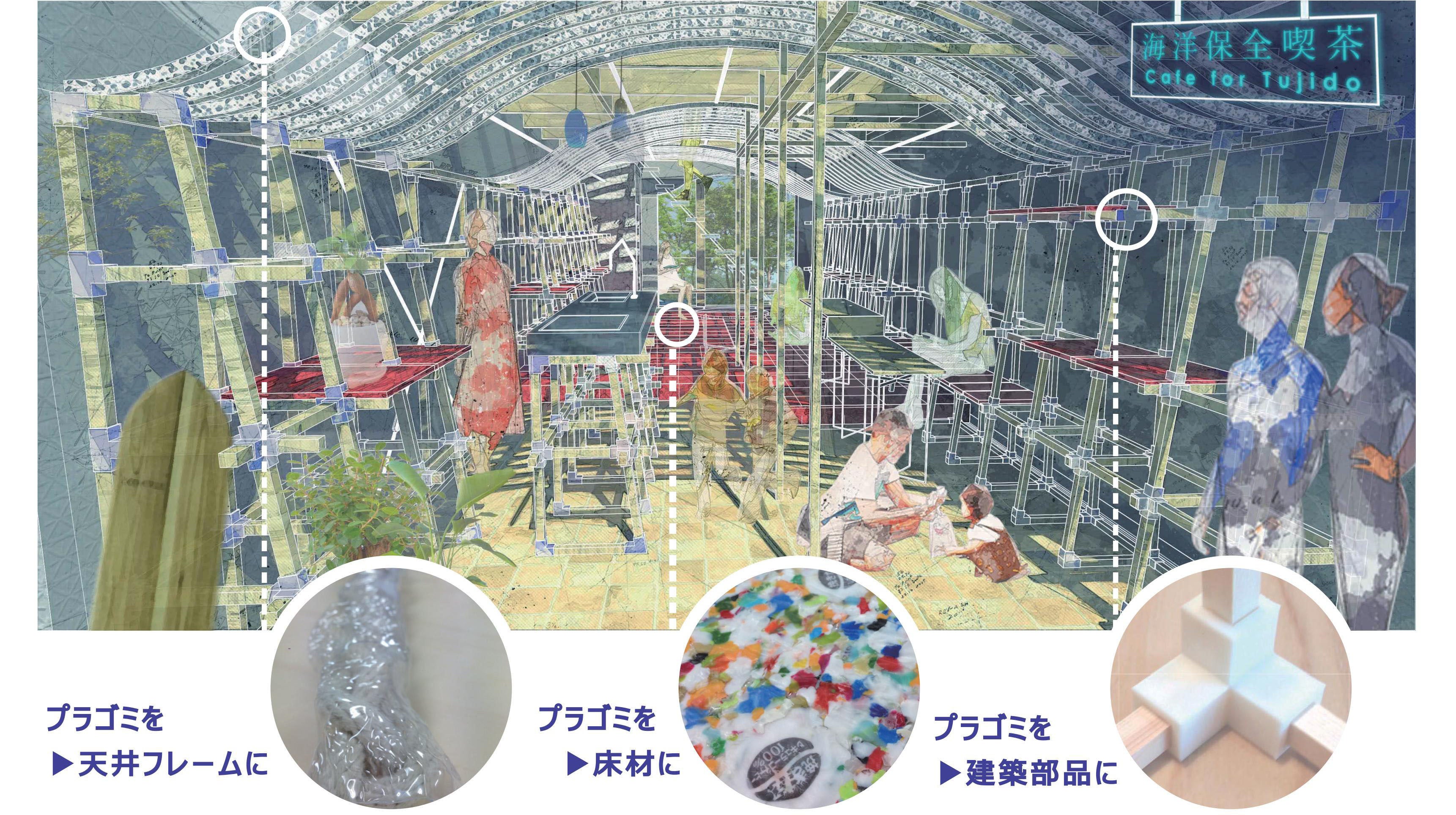 最近、急激にニュースなどにも取り上げられるようになった「プラスチックによる海洋汚染問題」。この問題を軽減するためにデザインや建築、アスリートである学生にも何か出来きないだろうか。ものづくりと環境保護を同時に実現できないだろうか。とてもシンプルな目的の実現に向けて、真剣にプラゴミを建築資源として捉え直したデザインプロジェクトです。