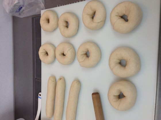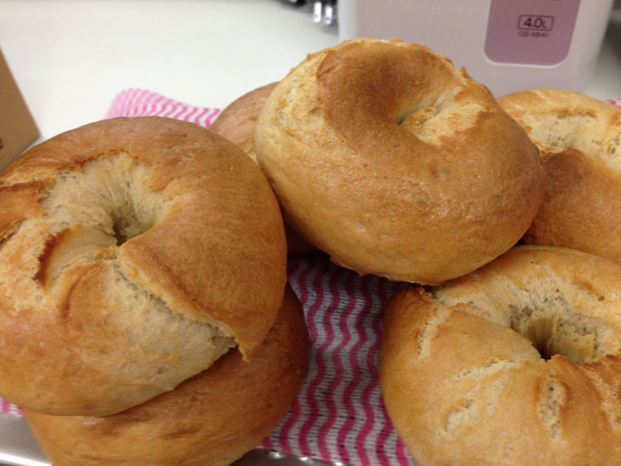 先日、ベーグルを成形後ボイルし、焼きあげ後です。