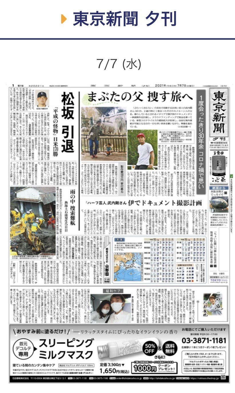 本プロジェクトに関する記事が東京新聞夕刊1面トップに載りました!