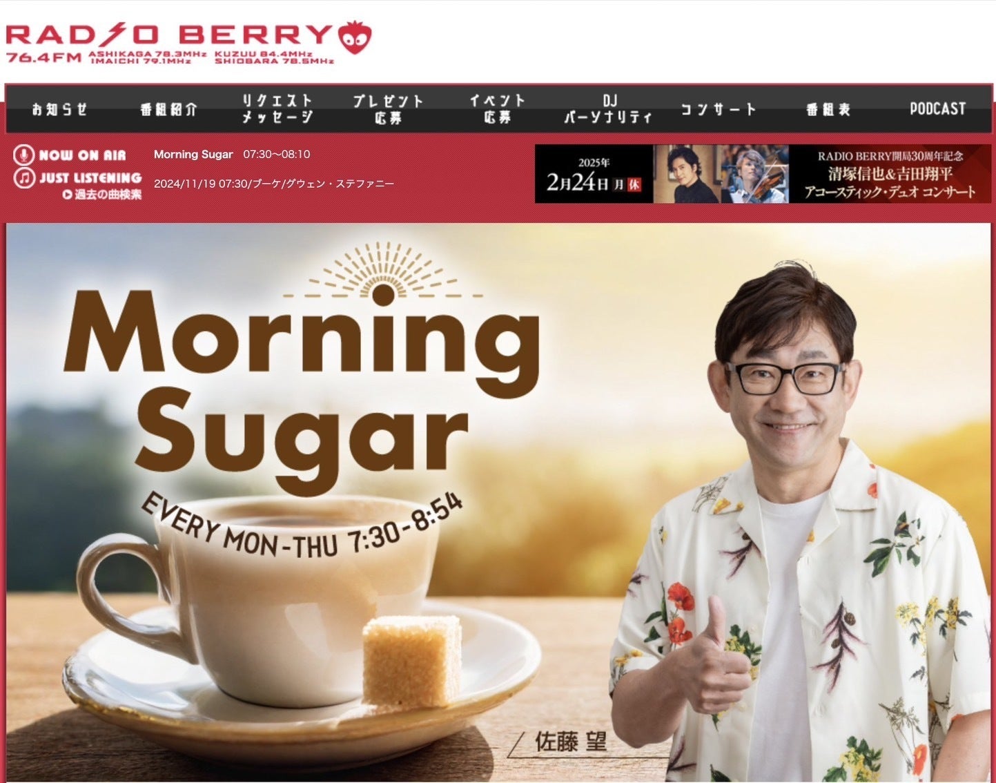 明日の朝、Radio Berry(エフエム栃木、)の人気番組「Morning Sugar」に生出演いたします。日時:11月21日(木) 8:35頃