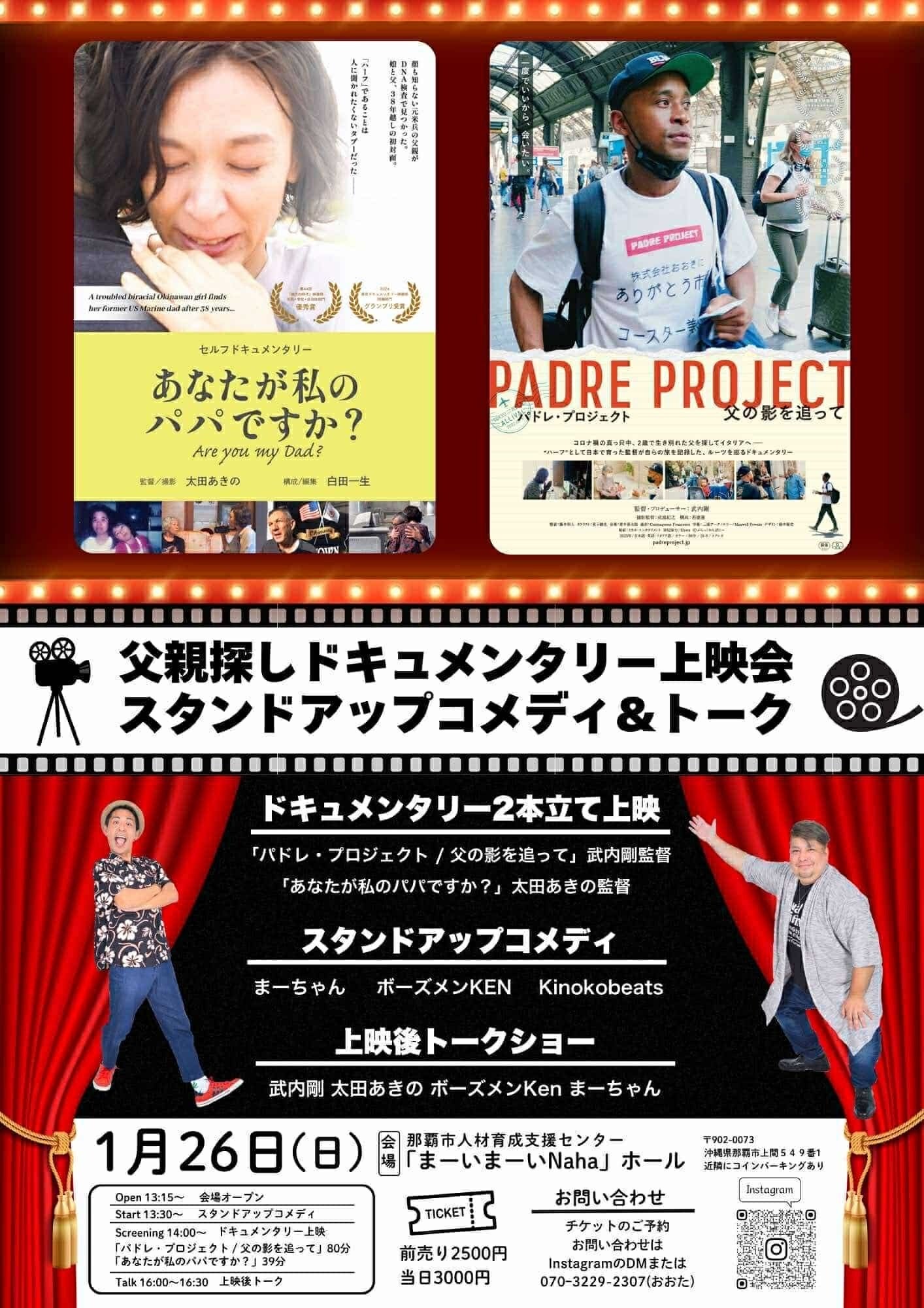 ③ 1月26(日)「父親探しドキュメンタリー2本立て&スタンドアップコメディ&トーク」