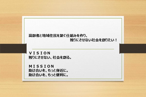 そこで、この助け合いという仕組みを地域で作ることで、高齢者を支えあい・人間愛を日々感じられる社会を創りたいと思ったのが、このプロジェクトをやろうと思ったきっかけです。
