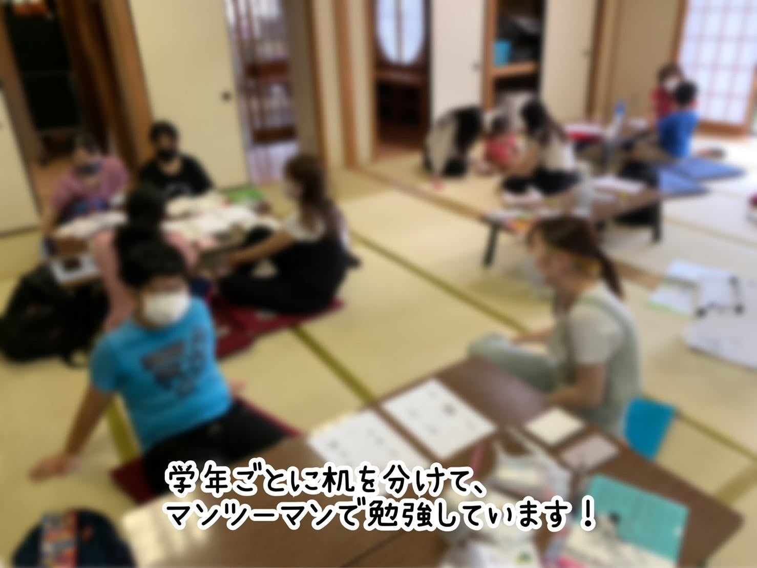 多くの場合、生徒1人に対して大学生スタッフが1名つく個別対応方式です。学校の勉強をする子もいれば、ひらがなから日本語を勉強する子もいて、学習内容は人それぞれです!