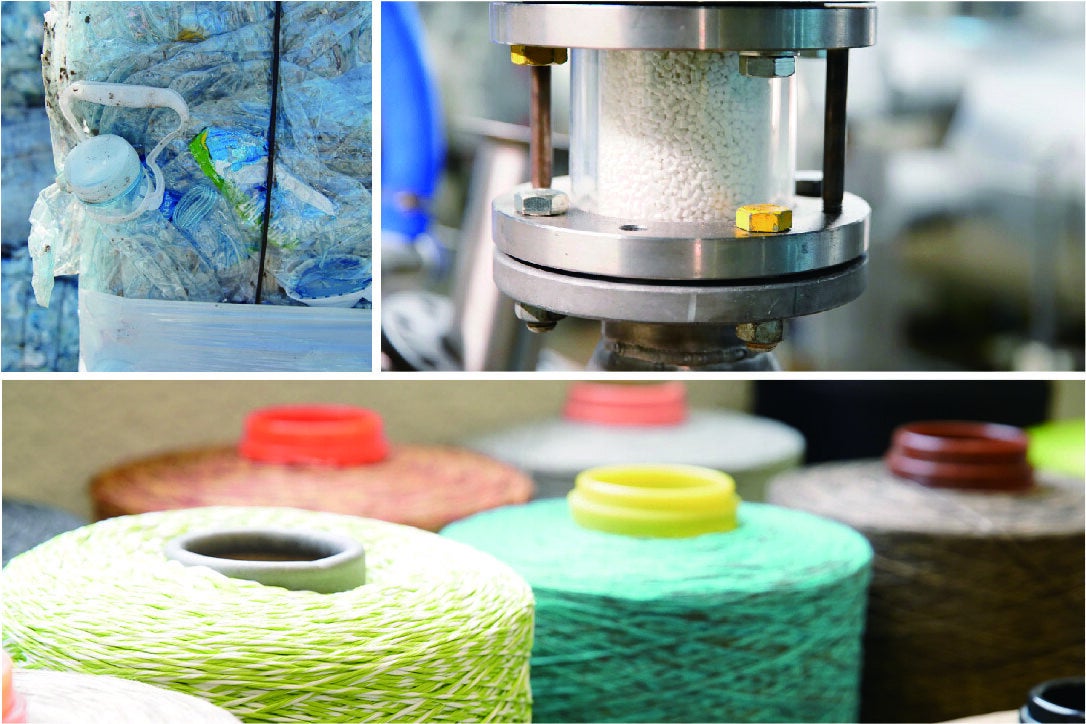 選別されたプラスチック部分は洗浄され 「アップサイクル・マリン・プラスチック」へ、そして世界でも稀なエコヤーン/ SEAQUAL YARN へと生まれ変わります。