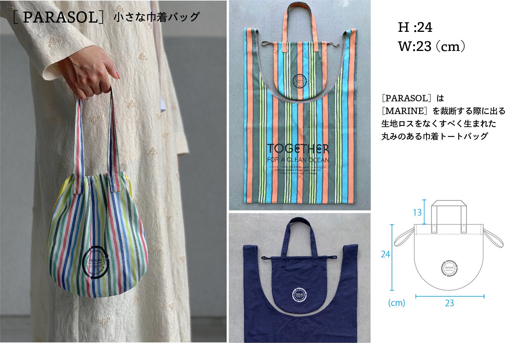 これは、この問題の解決に少しでも近づくことのできるプロジェクトです。スペインのSEAQUAL INITIATIVEのクリーンアッププログラムによって回収された海洋プラスチックごみを※アップサイクルした生地で素敵なバッグを作りました!
