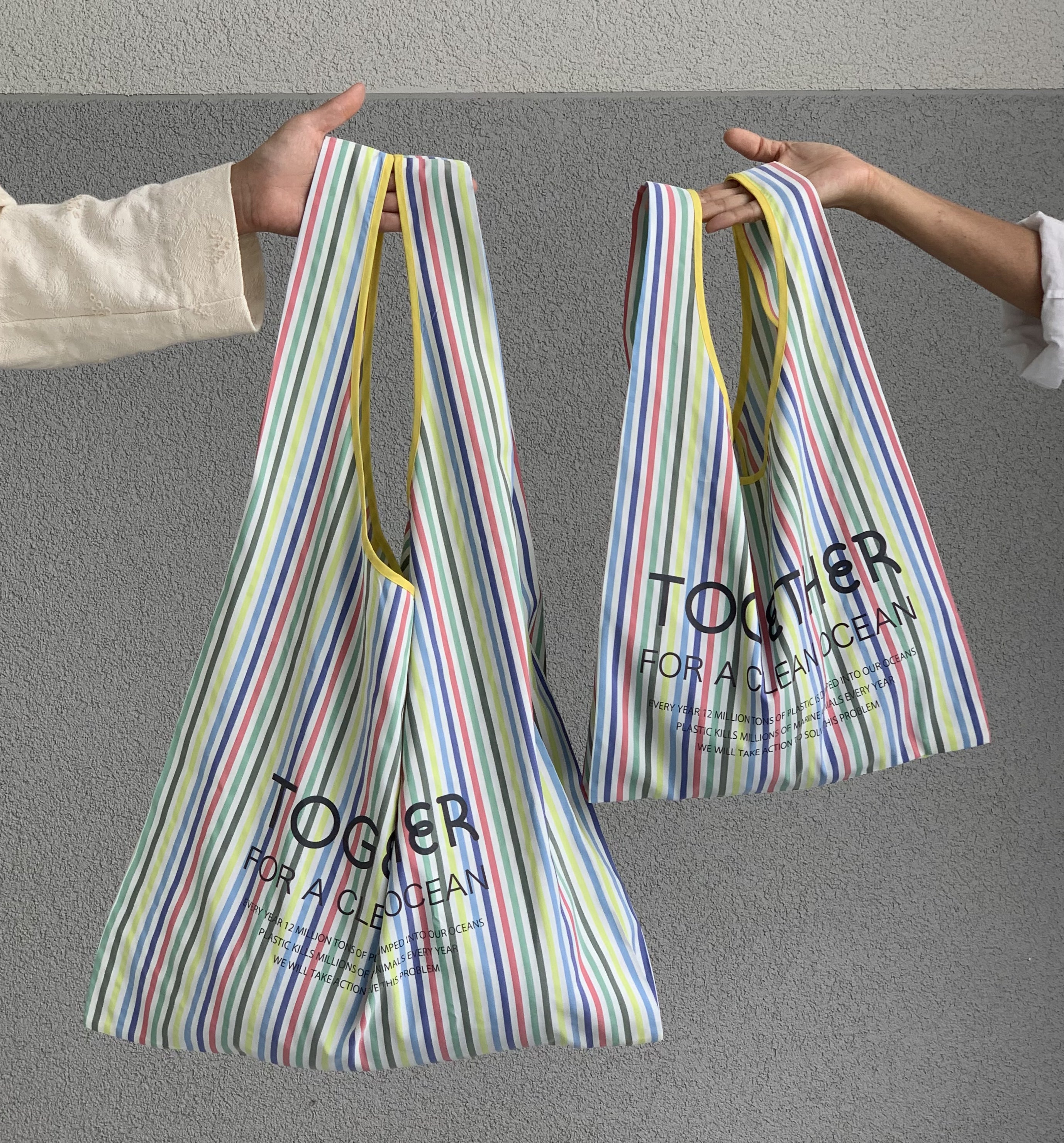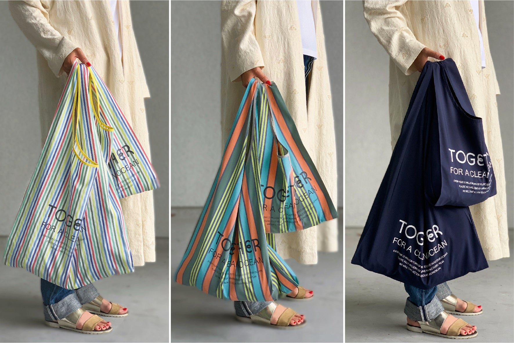 コンパクトに収納できるものが多く、持ち歩くバッグにしのばせておけば日常のお買いものにプラスチック袋をもらわずに済むのはもちろん、ヴィヴィッドカラーの独特なストライプ柄はスタイリングのポイントにもなります。