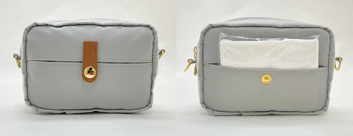 少しだけのお出かけには紐をつけてショルダーに、大きめバッグでお出かけは紐を外してポーチに早変わり。シーンに合わせて使用できいつでもスタンバイ。