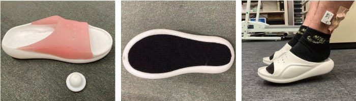 私たちは、室内で使用しやすいサンダルに着目し、イスに座った状態においても筋活動を活性化させ、運動効果の向上につながる構造の試作を重ねました。