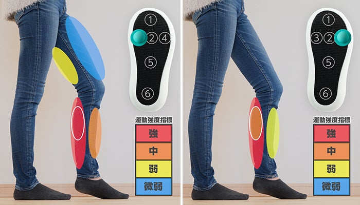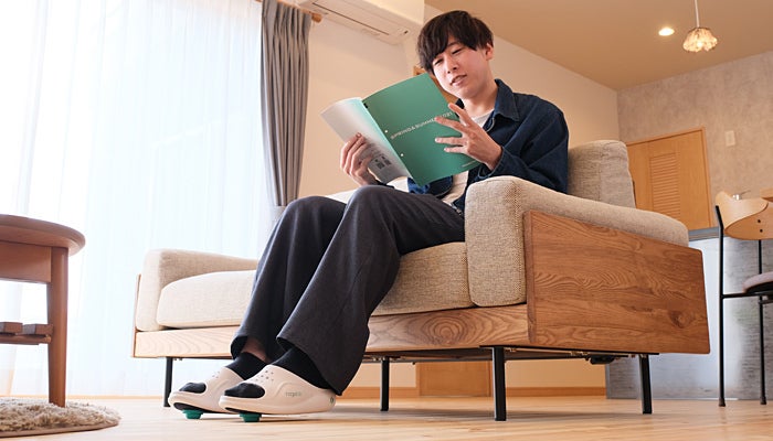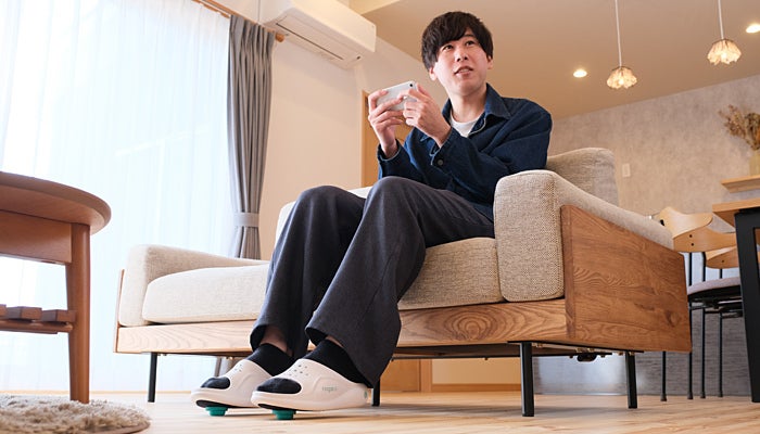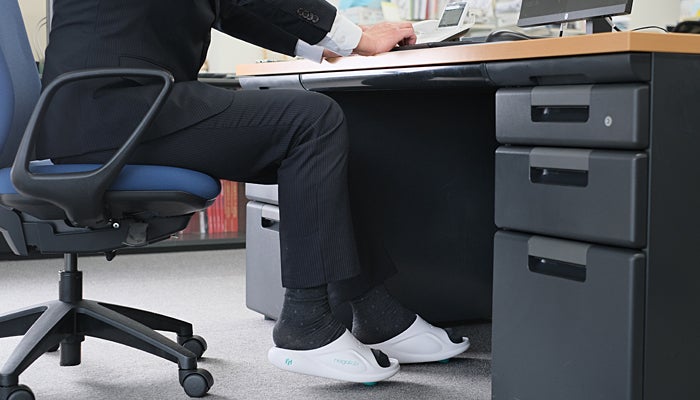 これまでに立ったり歩いたりすることで下肢の筋活動を活性化させ、運動効果を向上させる履物は市場にもありましたが、座ったままで同様の効果が得られる履物は商品化されておりませんでした。