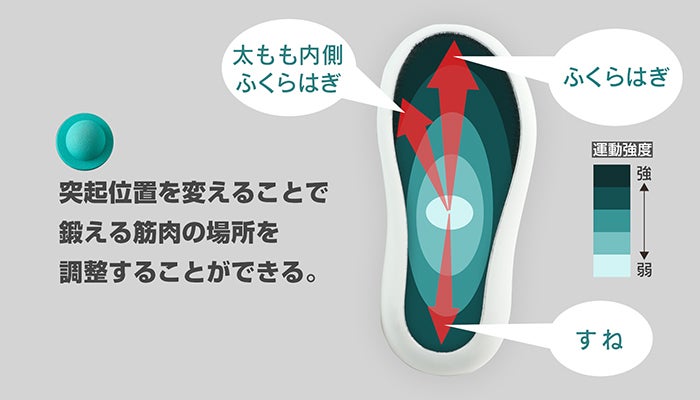 その結果、サンダルの底面に設けた突起物のみでバランスをとりながら足を支え続けることが、筋活動の活性化に繋がり、エクササイズ効果を促すというアイデアを導き出しました。