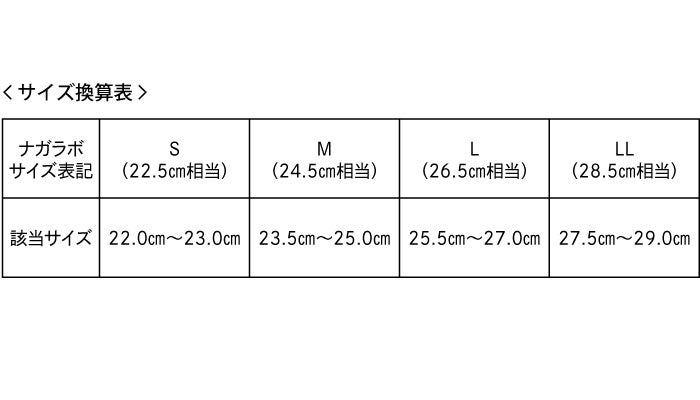 サイズ:S (22.5cm相当) ・M (24.5cm相当) ・ L (26.5cm相当) ・ LL (28.5cm相当)