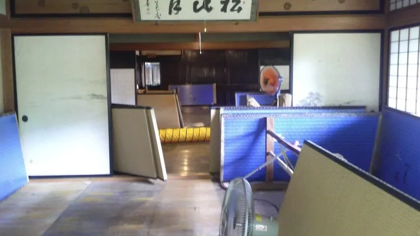 去年の豪雨の4日間降り続いた大雨で床下浸水し、家が少し傾いてしまった当館。日本遺産認定の古民家であっても、県や国の重要文化財には指定されていない為、コンクリート基礎にするには、莫大な金額の負担となり、現在も修復のメドは立っていない。