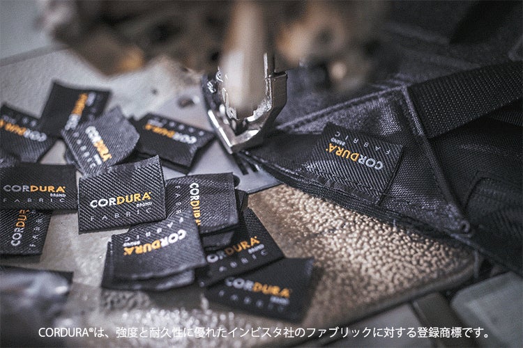 一般的な素材を凌駕する強度を誇り、耐摩耗性、対引裂性に秀でたCORDURA®(コーデュラ®)を採用。元はアメリカのデュポン社が戦中に開発した軍用製品のための生地なので、その品質は確かなもの。