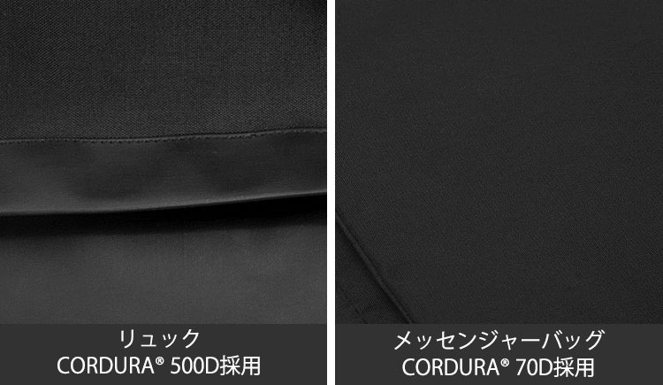 メッセンジャーバッグは表地70DのCORDURA®を採用しており、リュックとは違う密度で編み上げることで、普段使いに適した軽量さに仕上げました。